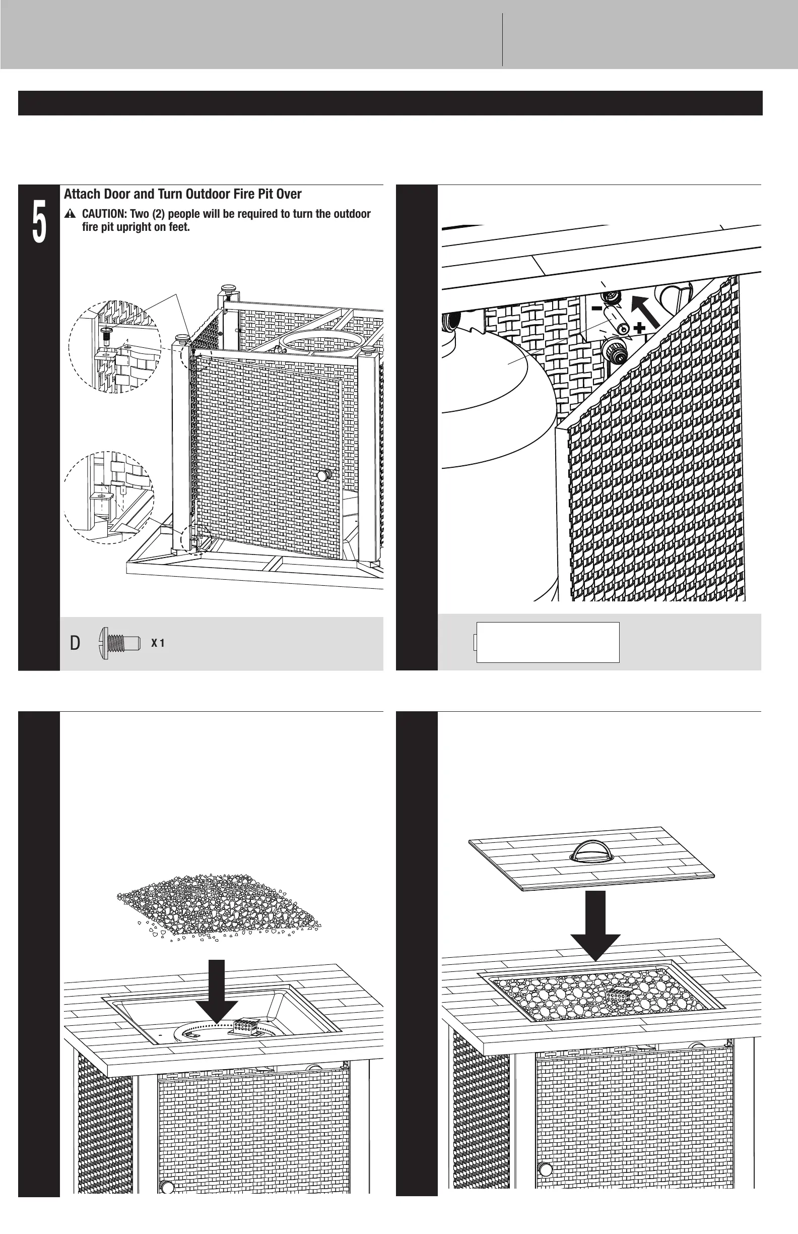 W CAUTION: Two (2) people will be required to turn the outdoor
