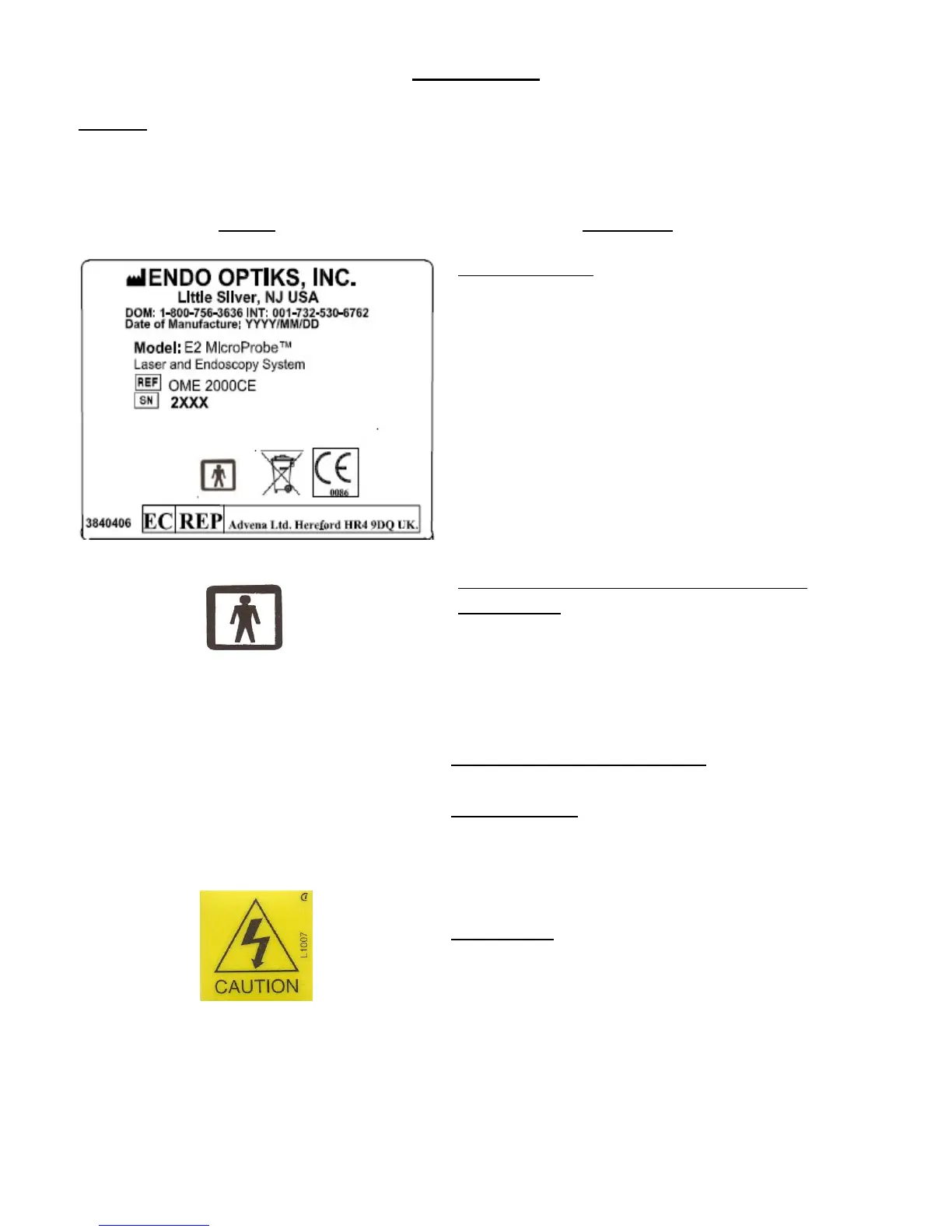 The following labels are affixed to the E2 Microprobe¥ system. The title, the part