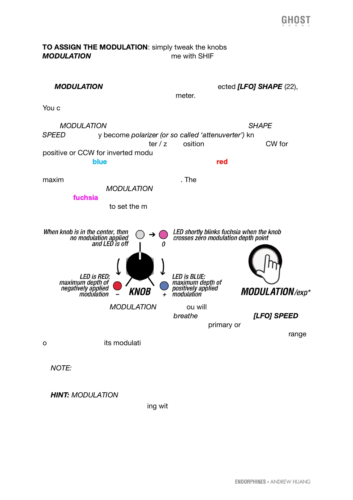 maximum when the knob reaches the sides. There is no modulation applied when