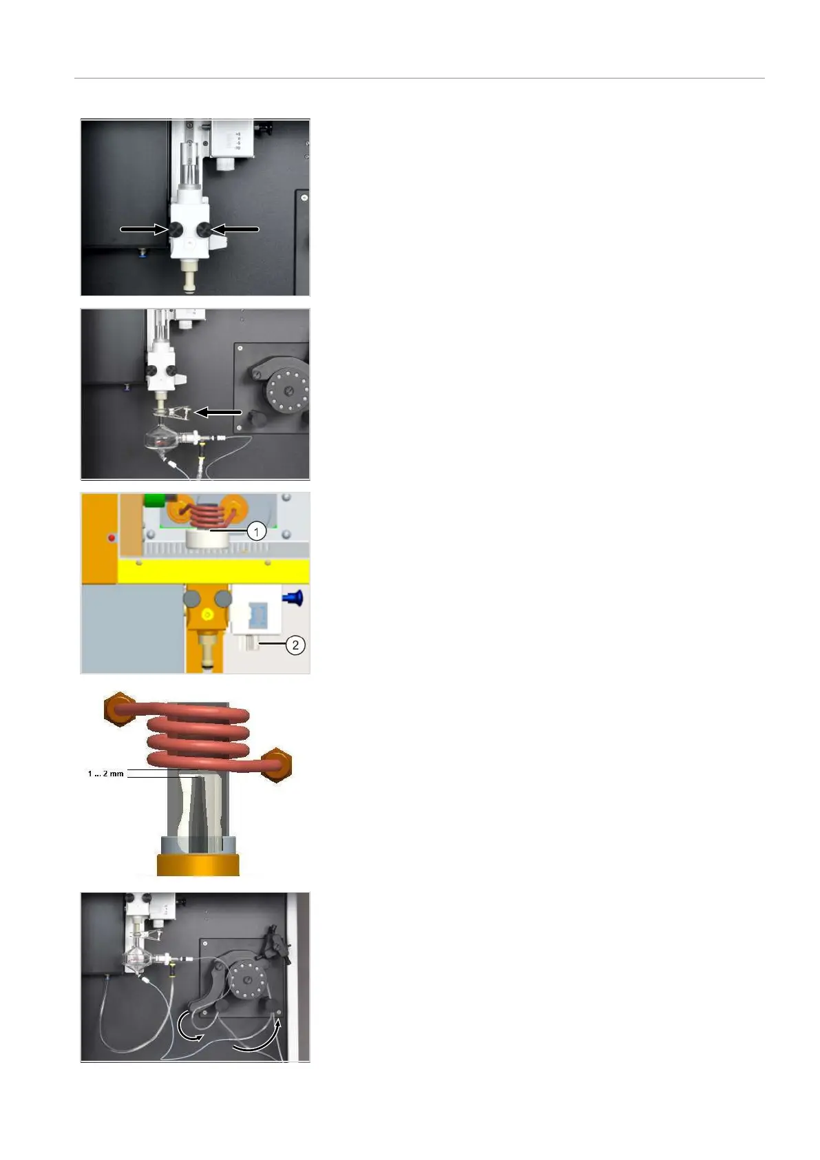 } Attach the torch to the carriage on the adjusting rail in the sample cham-