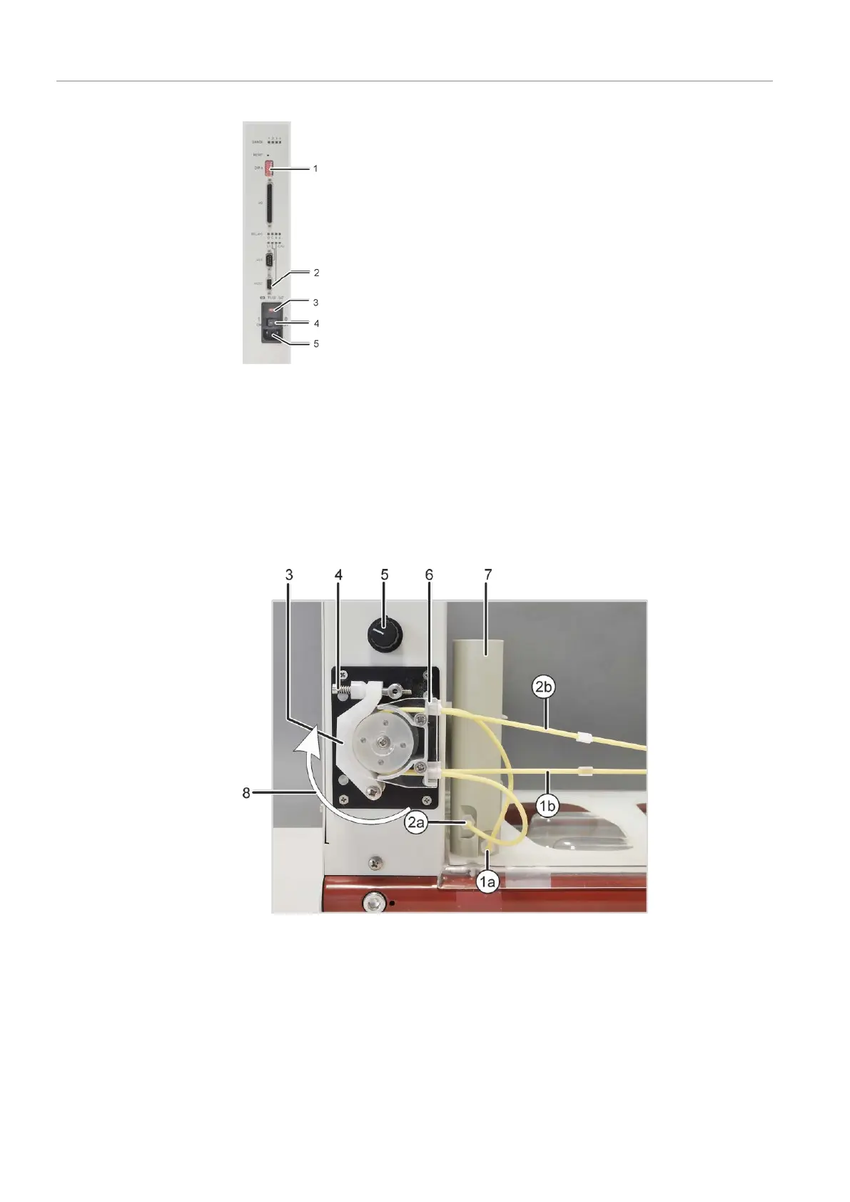 5 Pump speed controller 6 Hose block for clamping the pump