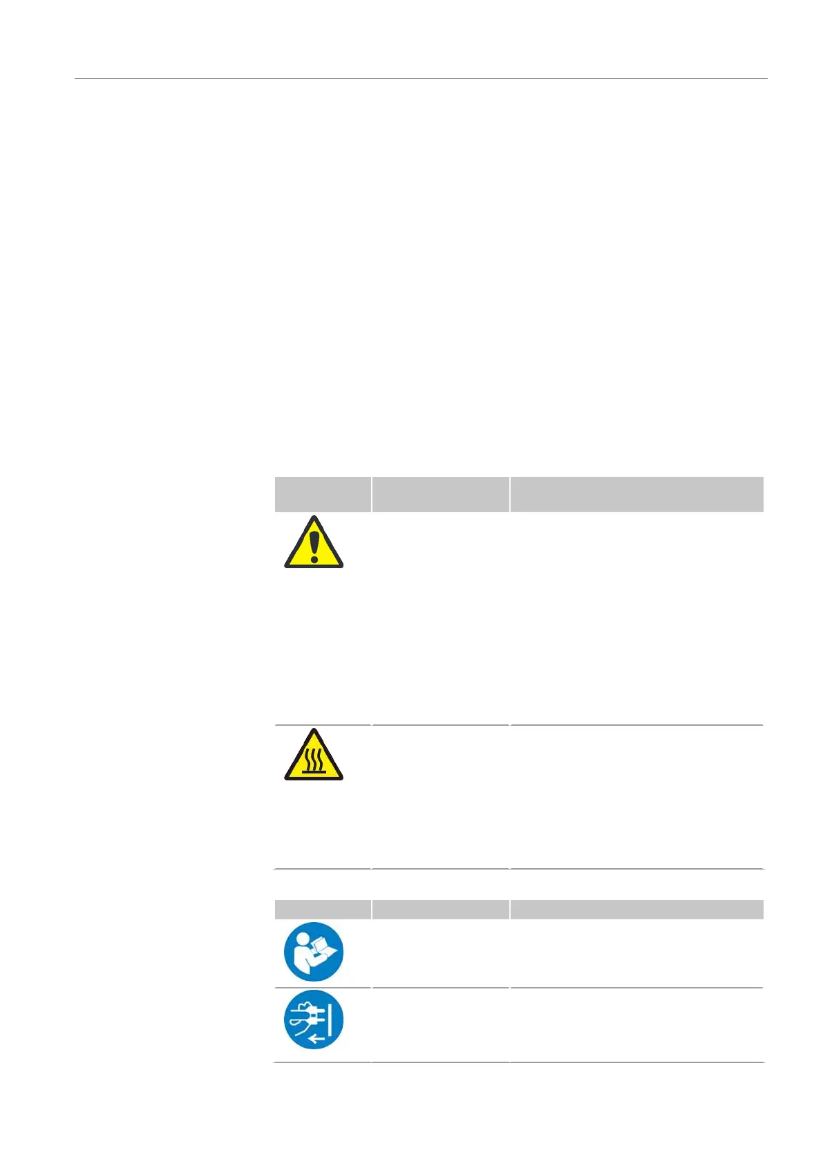 Warning and mandatory action labels have been attached to the device and must al-