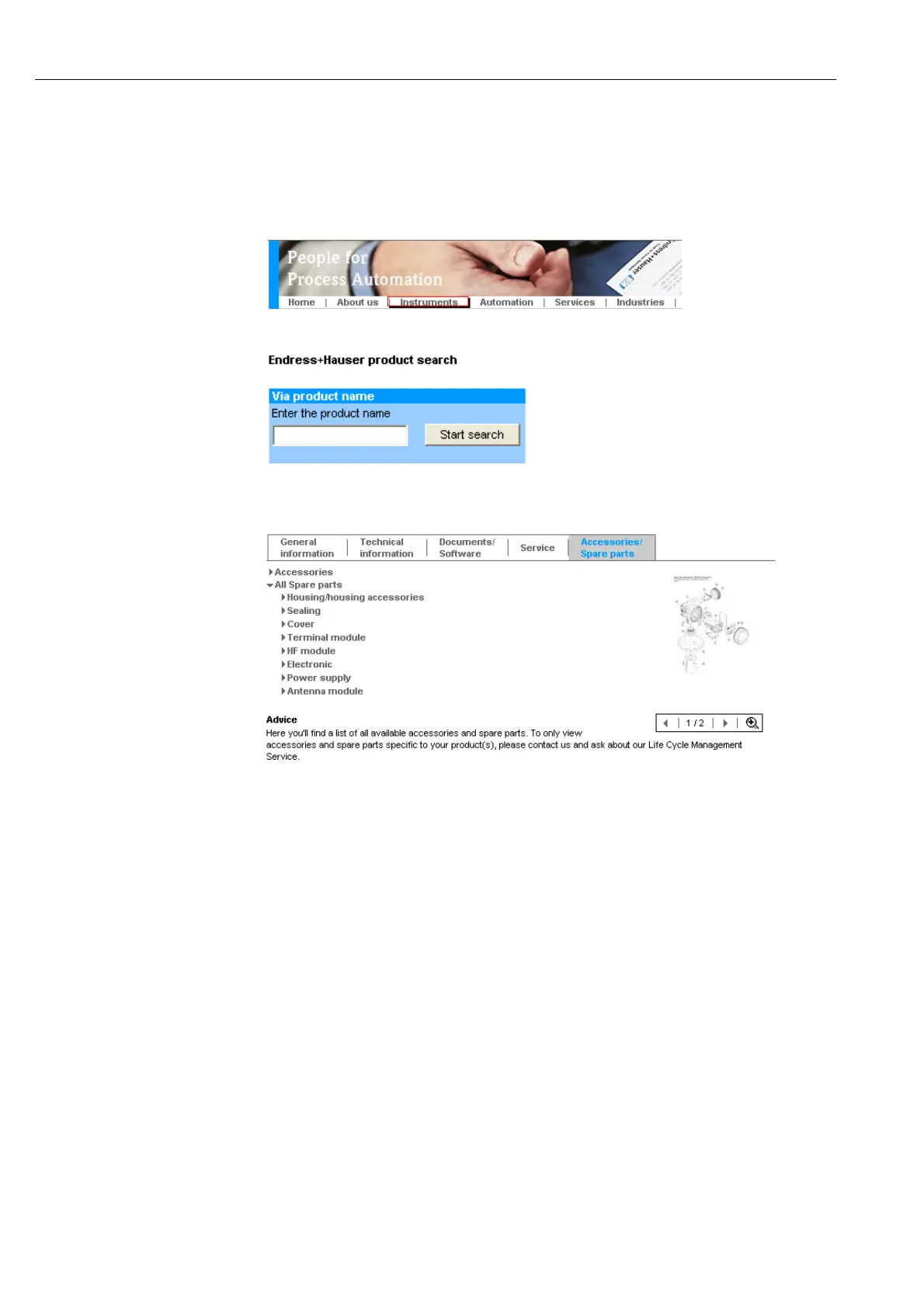 An overview of the spare parts for your device is available in the internet at www.endress.com.