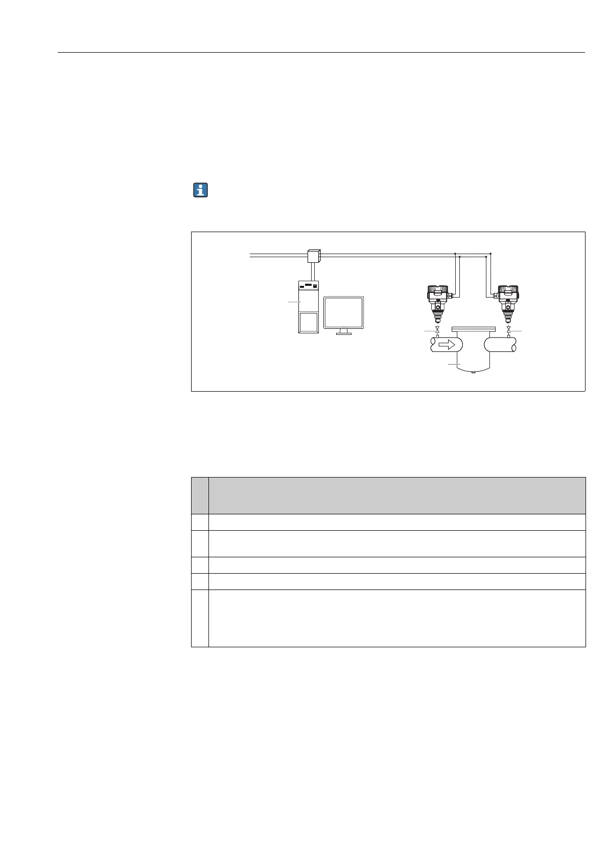 In the example given, two Cerabar M or Deltapilot M devices (each with a gauge pressure