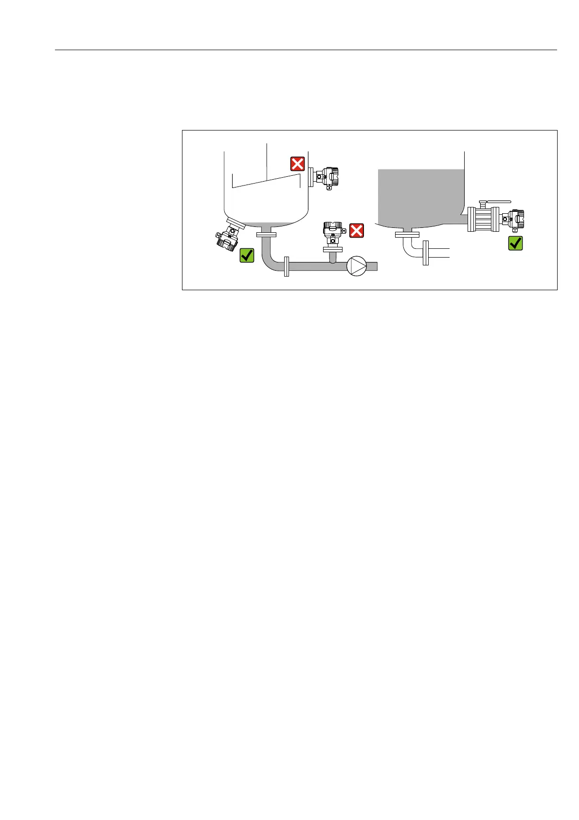 • Always install the device below the lowest measuring point.