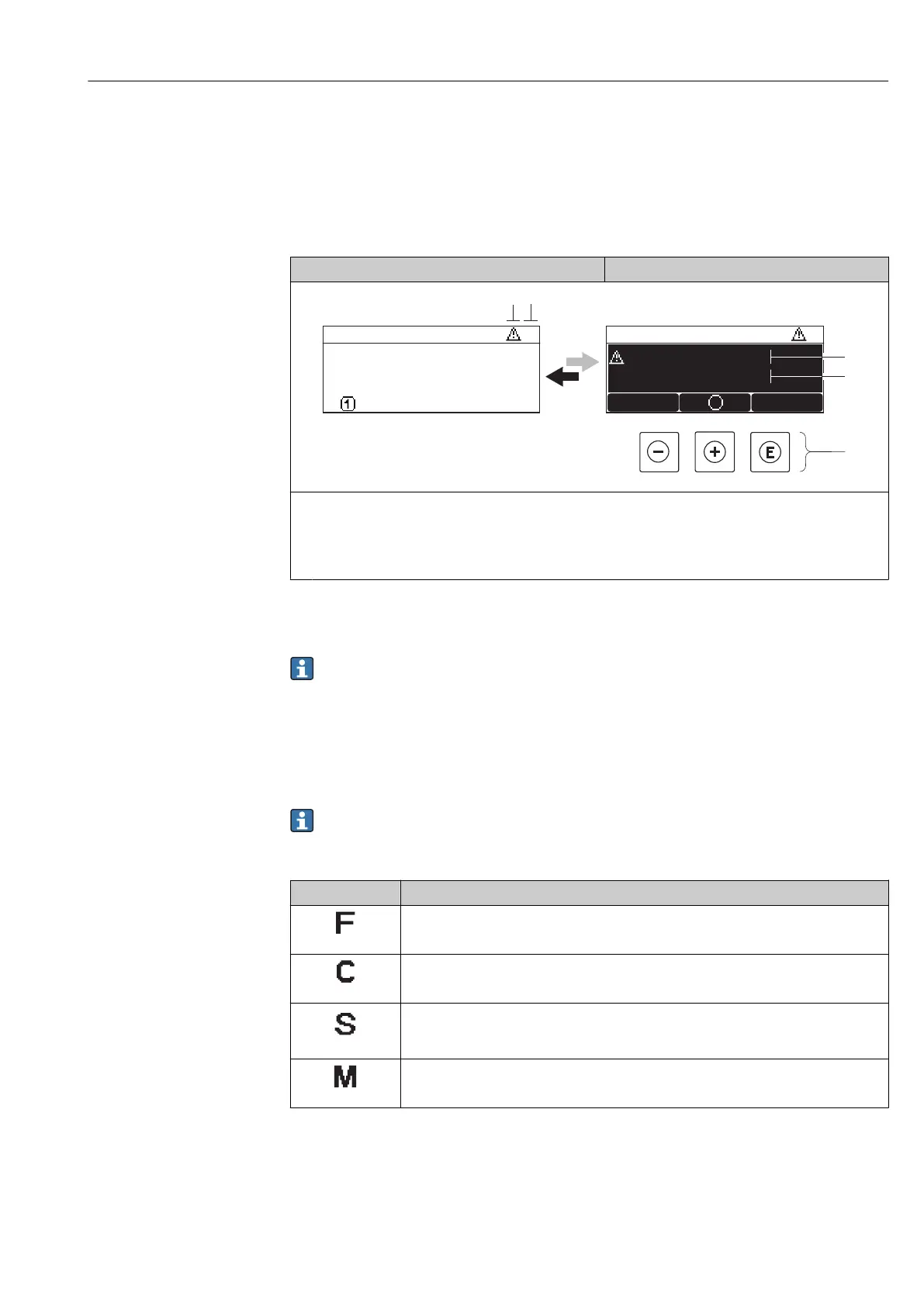 Faults detected by the self-monitoring system of the measuring device are displayed as a