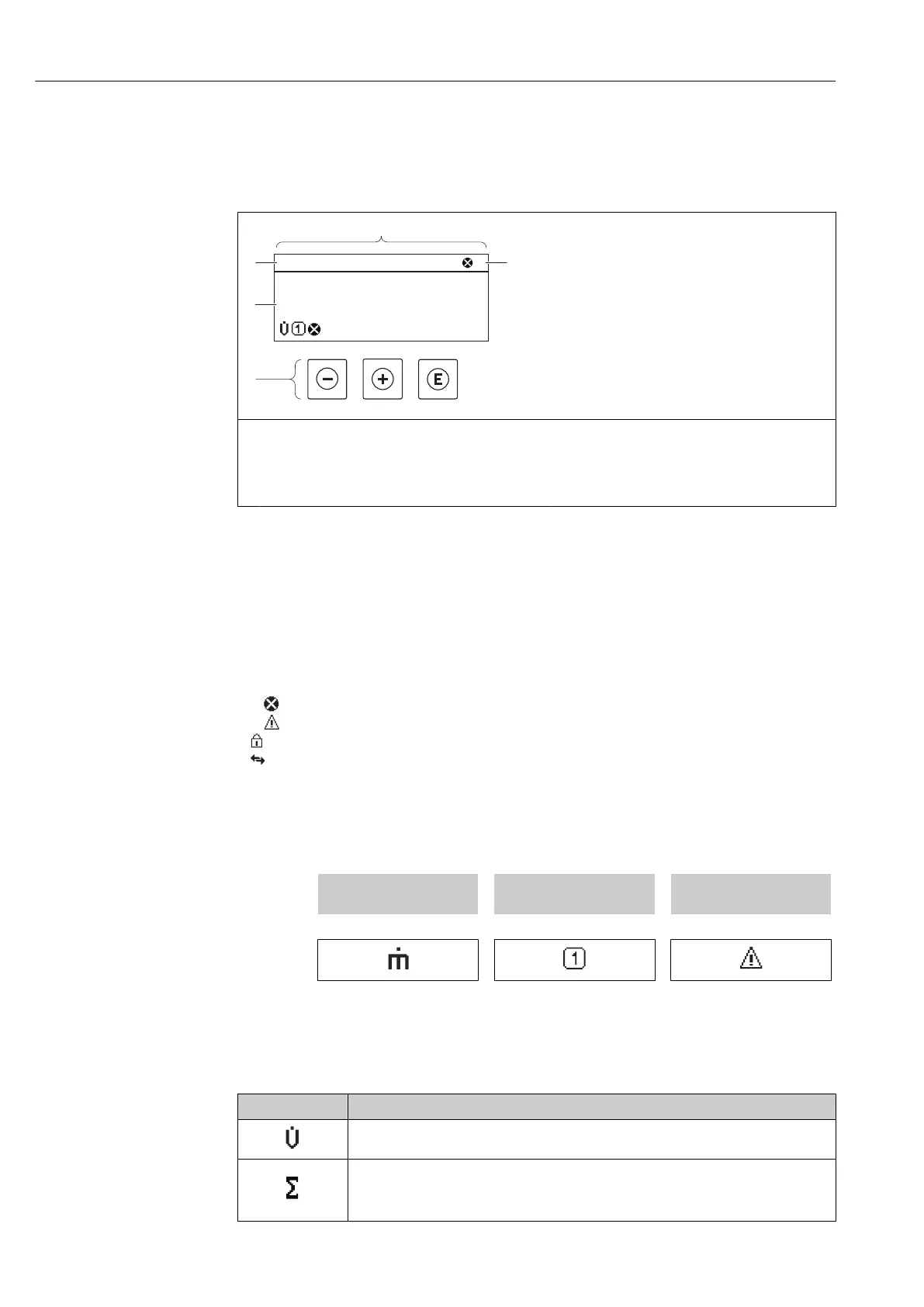 In the display area, each measured value is prefaced by certain symbol types for further