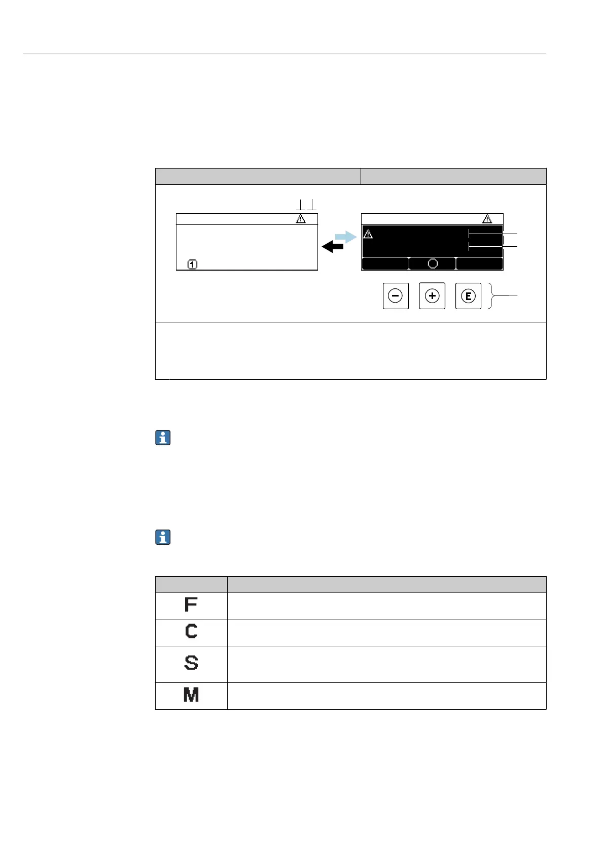 Faults detected by the self-monitoring system of the measuring device are displayed as a