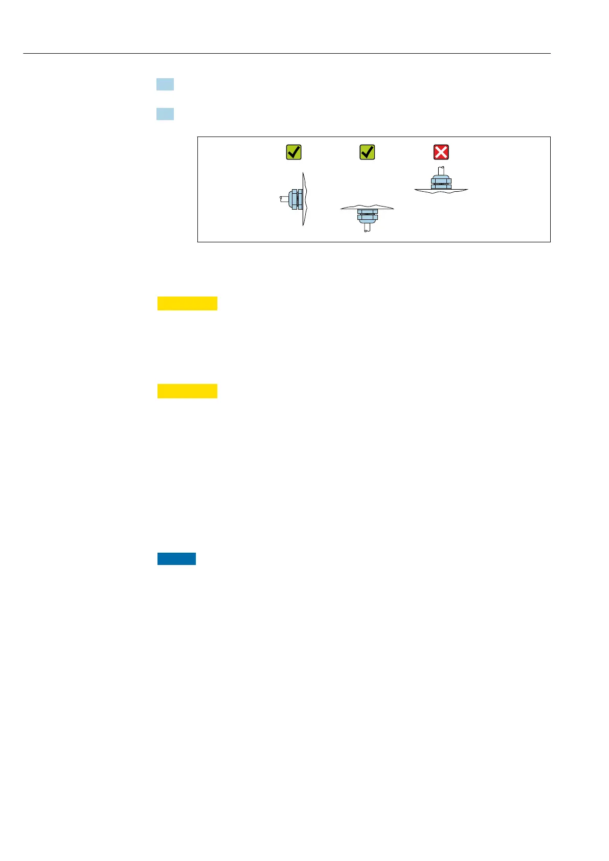 2. Install the measuring device or turn the transmitter housing so that the cable entries