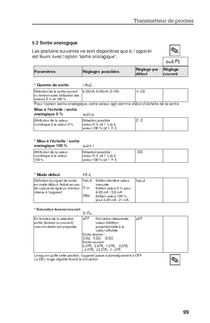Pour loption sortie analogique, cette valeur agit comme début déchelle de la sortie