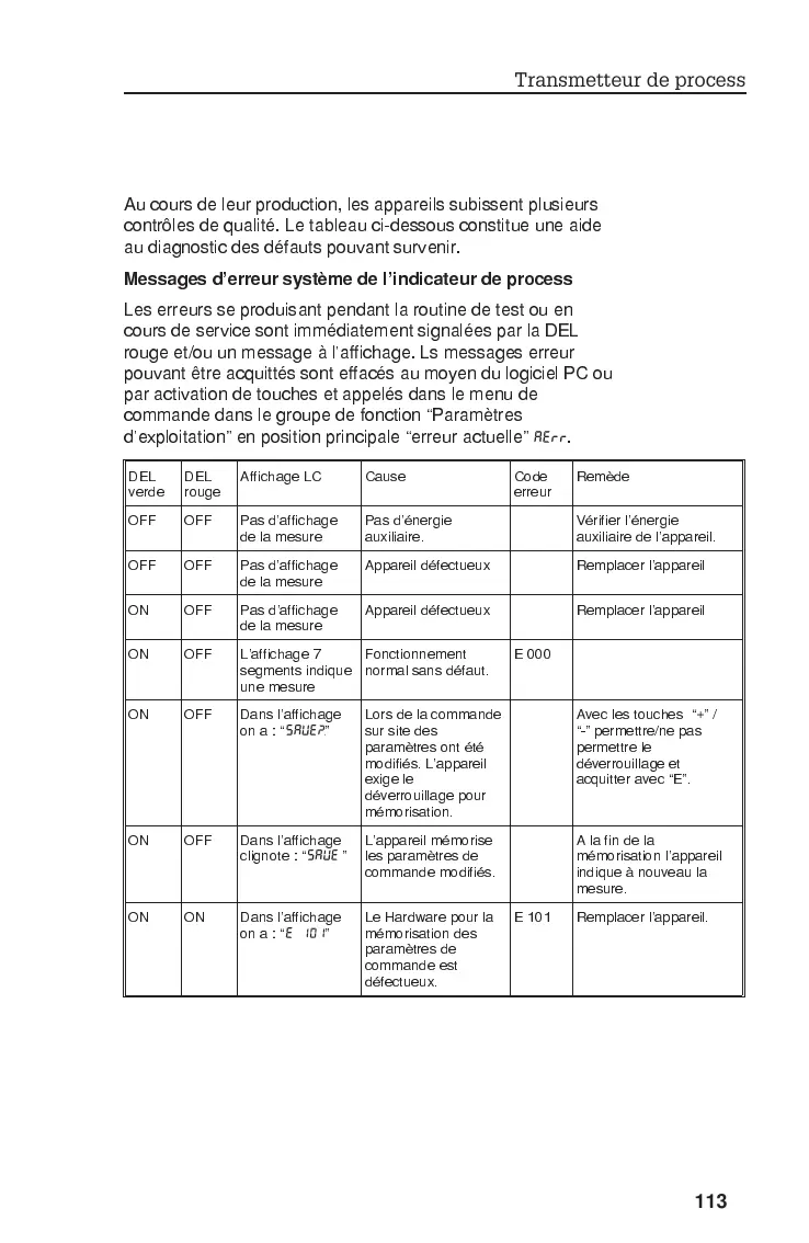 Messages derreur système de lindicateur de process