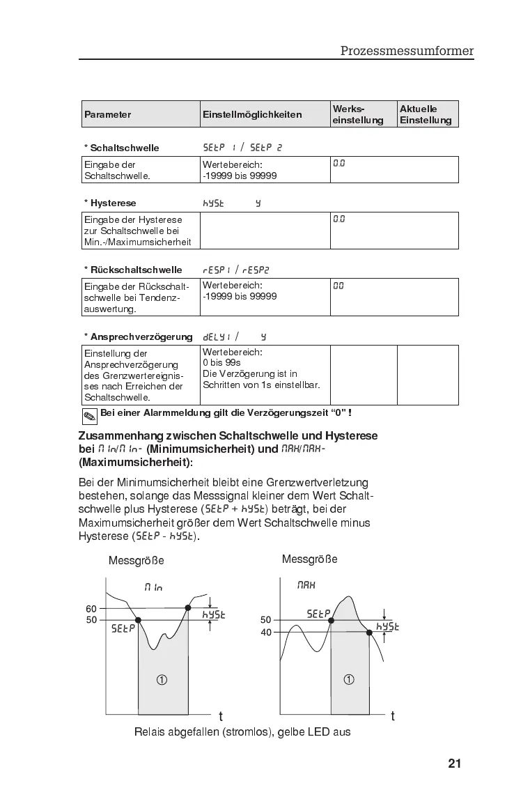 bestehen, solange das Messsignal kleiner dem Wert Schalt-