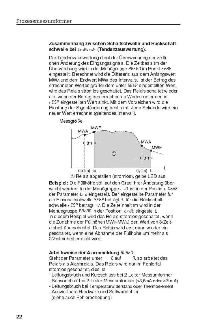 eingestellten Wert sinkt. Mit dem Vorzeichen wird die