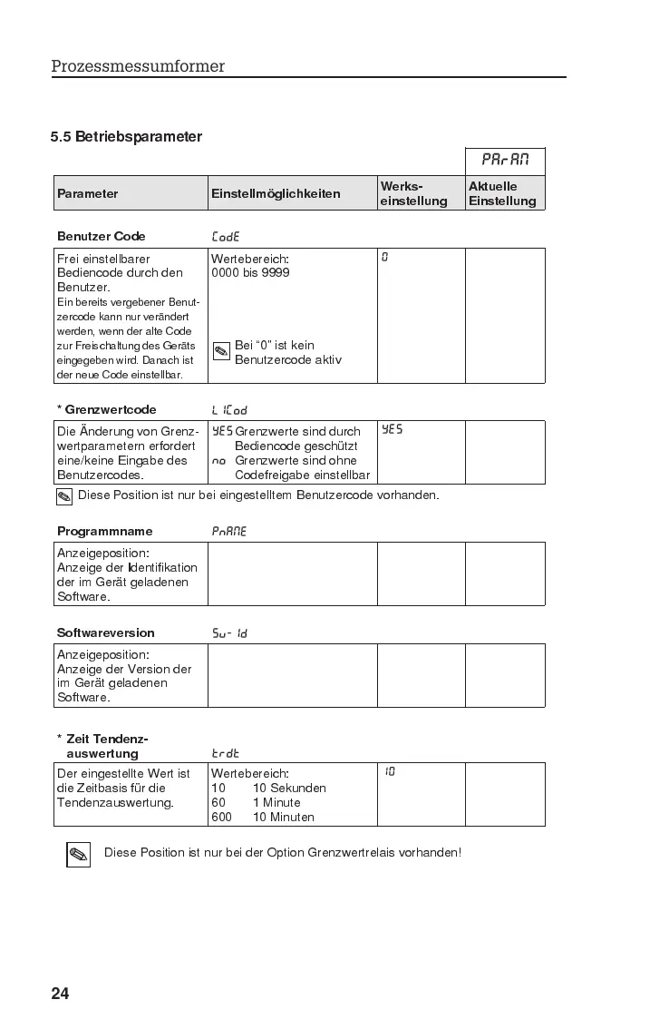 5.5 Betriebsparameter