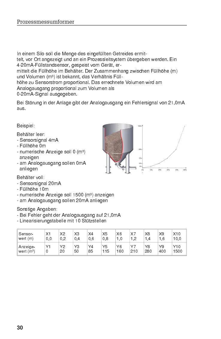 mittelt die Füllhöhe im Behälter. Der Zusammenhang zwischen Füllhöhe (m)
