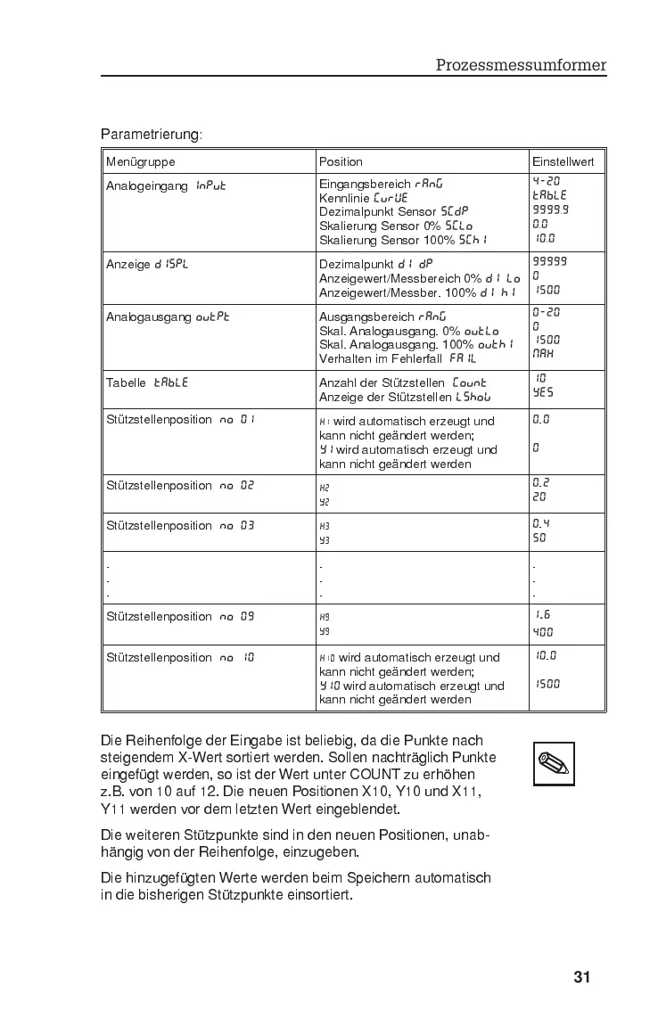 Parametrierung: