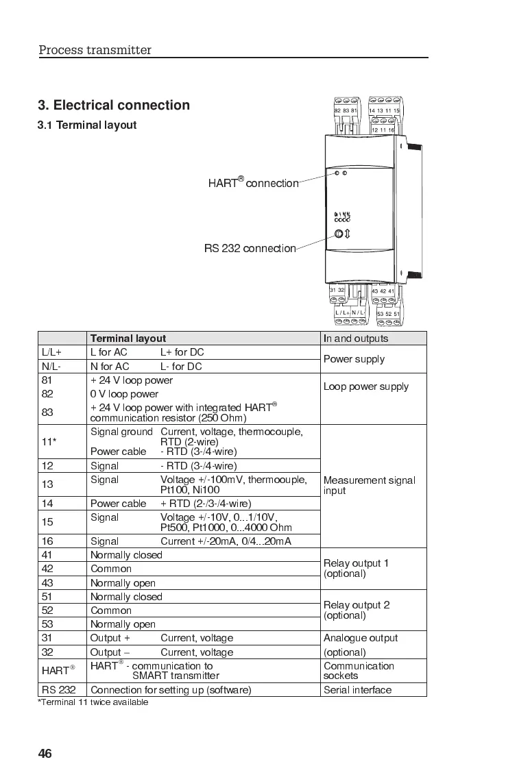 Endress+Hauser RMA 421 - Electrical Connection; HART Connection