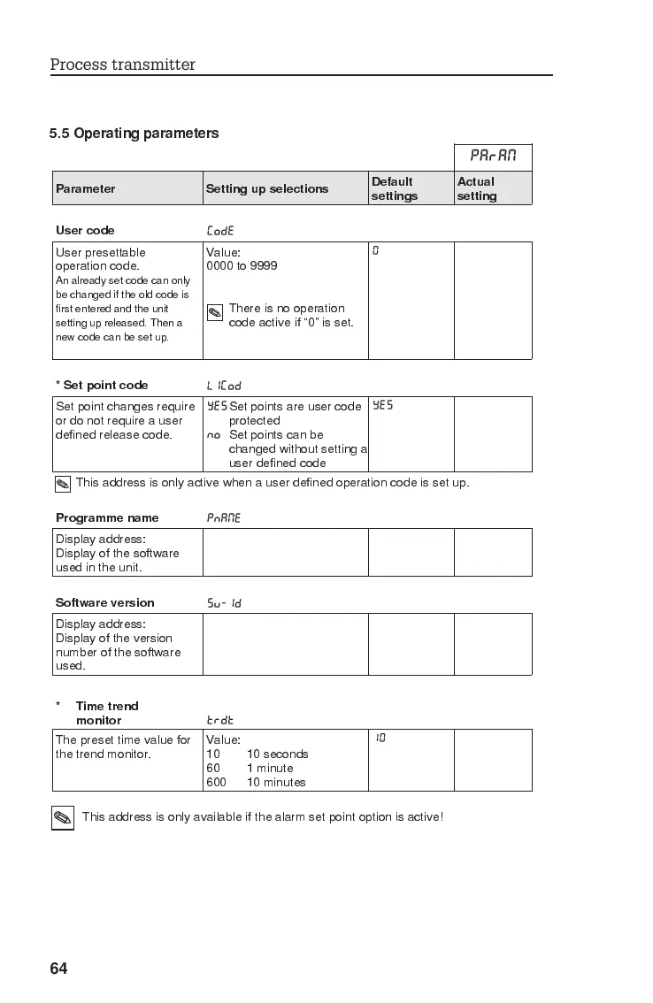 5.5 Operating parameters