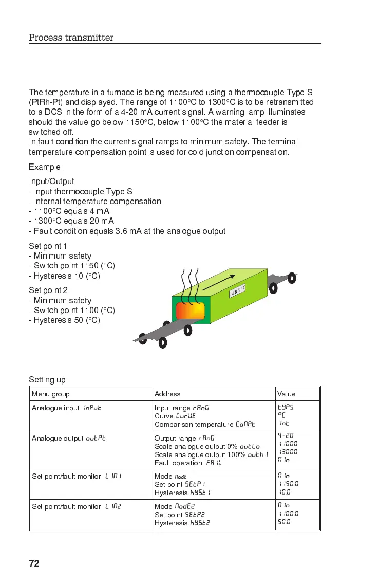 (PtRh-Pt) and displayed. The range of 1100°C to 1300°C is to be retransmitted