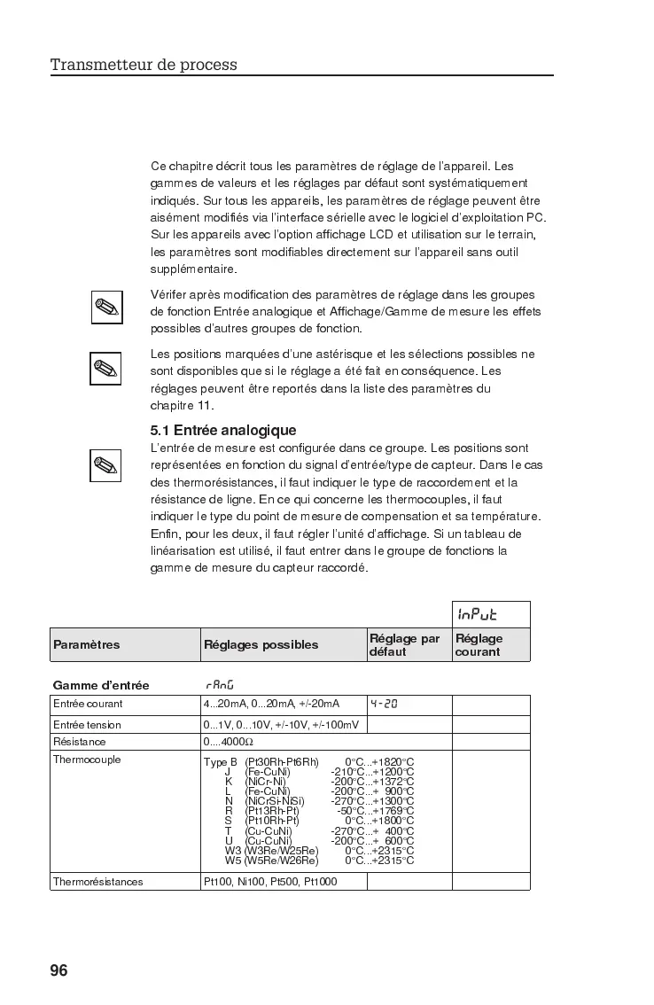 Endress+Hauser RMA 421 - Description des Paramètres; Entrée Analogique