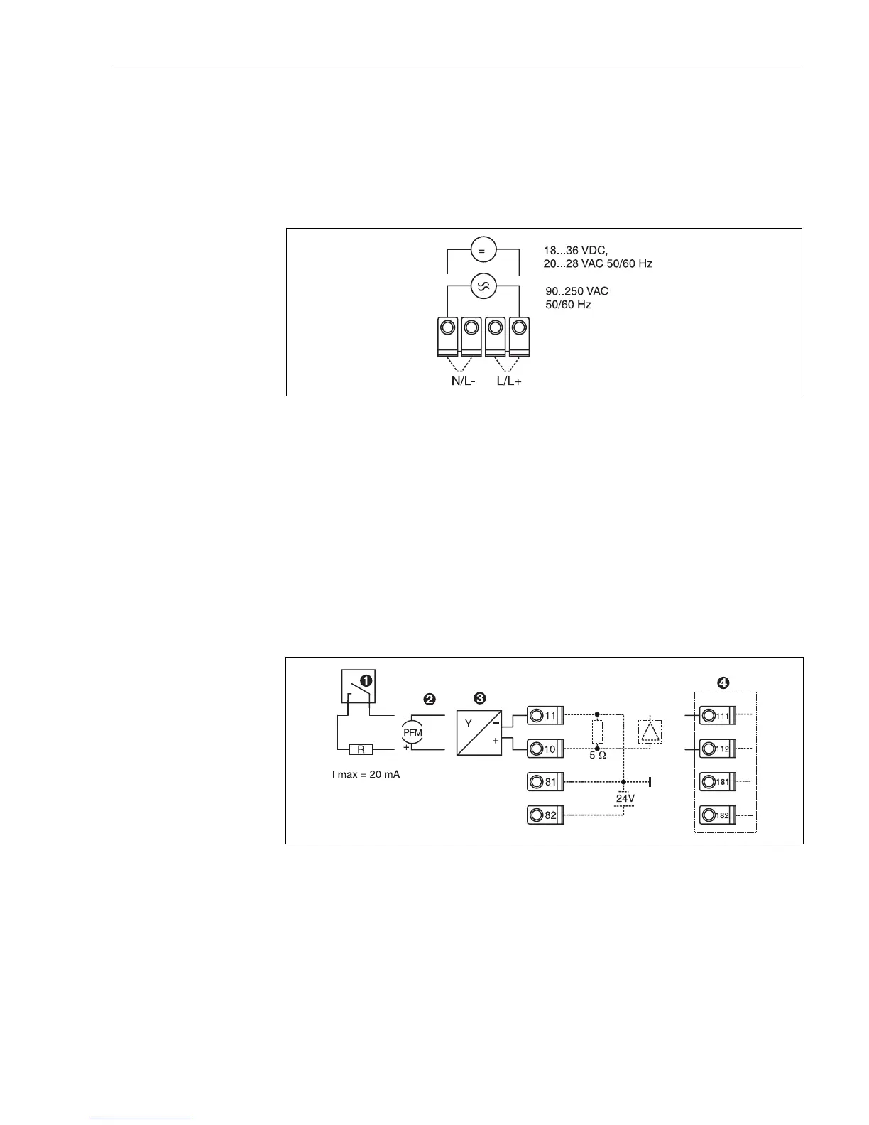 • When operating with a 90 to 250 V AC (power supply) a power isolator must be situated within