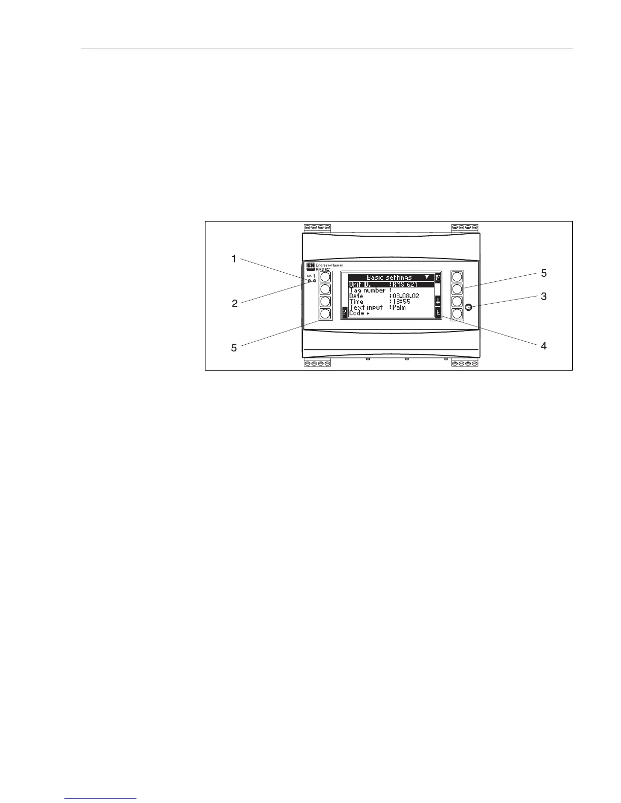 Item 4: display 132 x 64 dot-matrix display with dialog text for configuring as well as measured value, limit value and fault