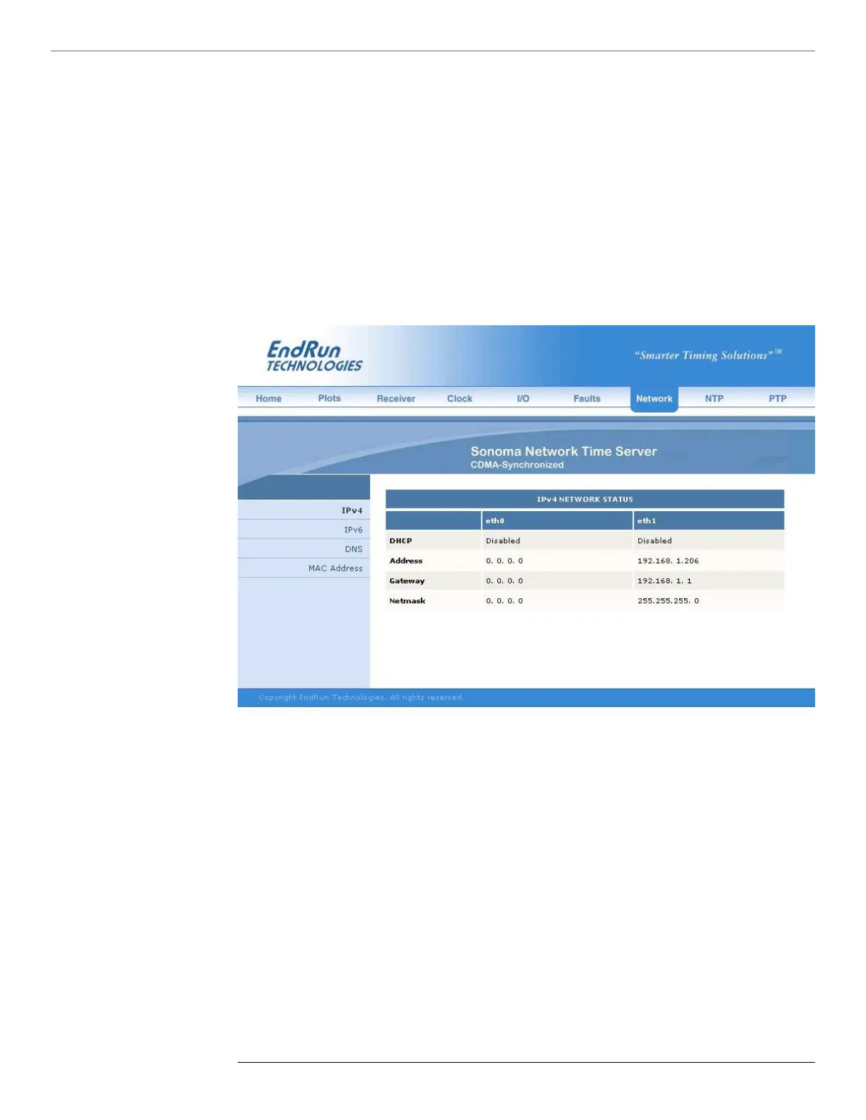 Network, NTP, PTP and Firmware. The subcategory links on this particular page are: IPv4, IPv6,