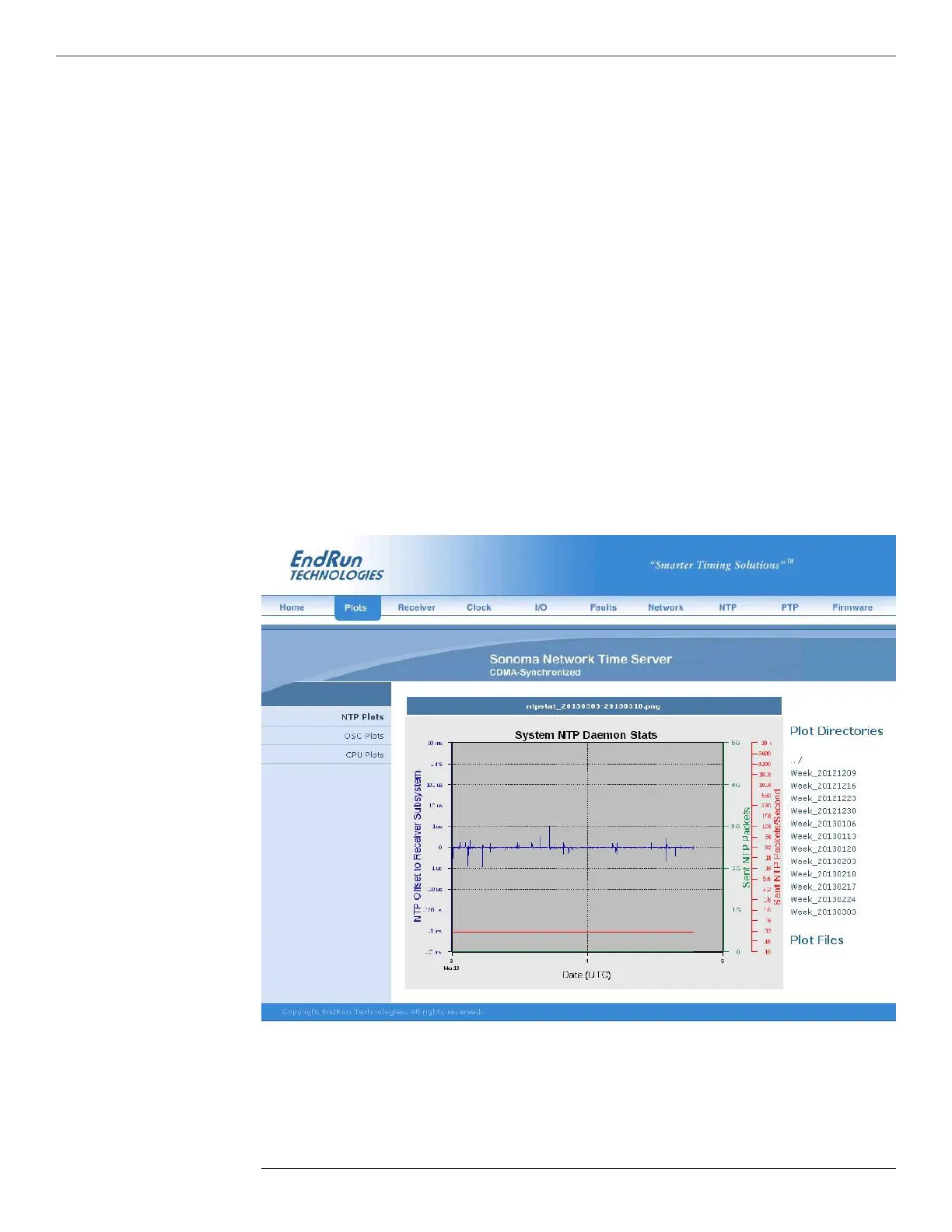 There are three types of data plots available for viewing: CPU, NTP and Oscillator. The large data