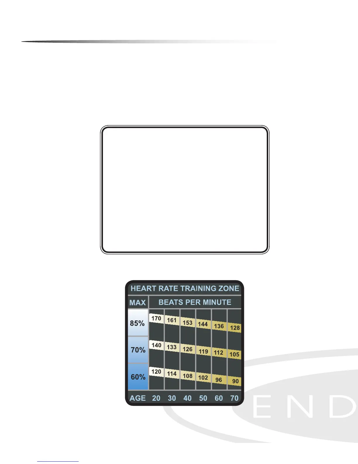 The Heart Rate chart indicates average rate zones for dierent ages. A variety of dif-