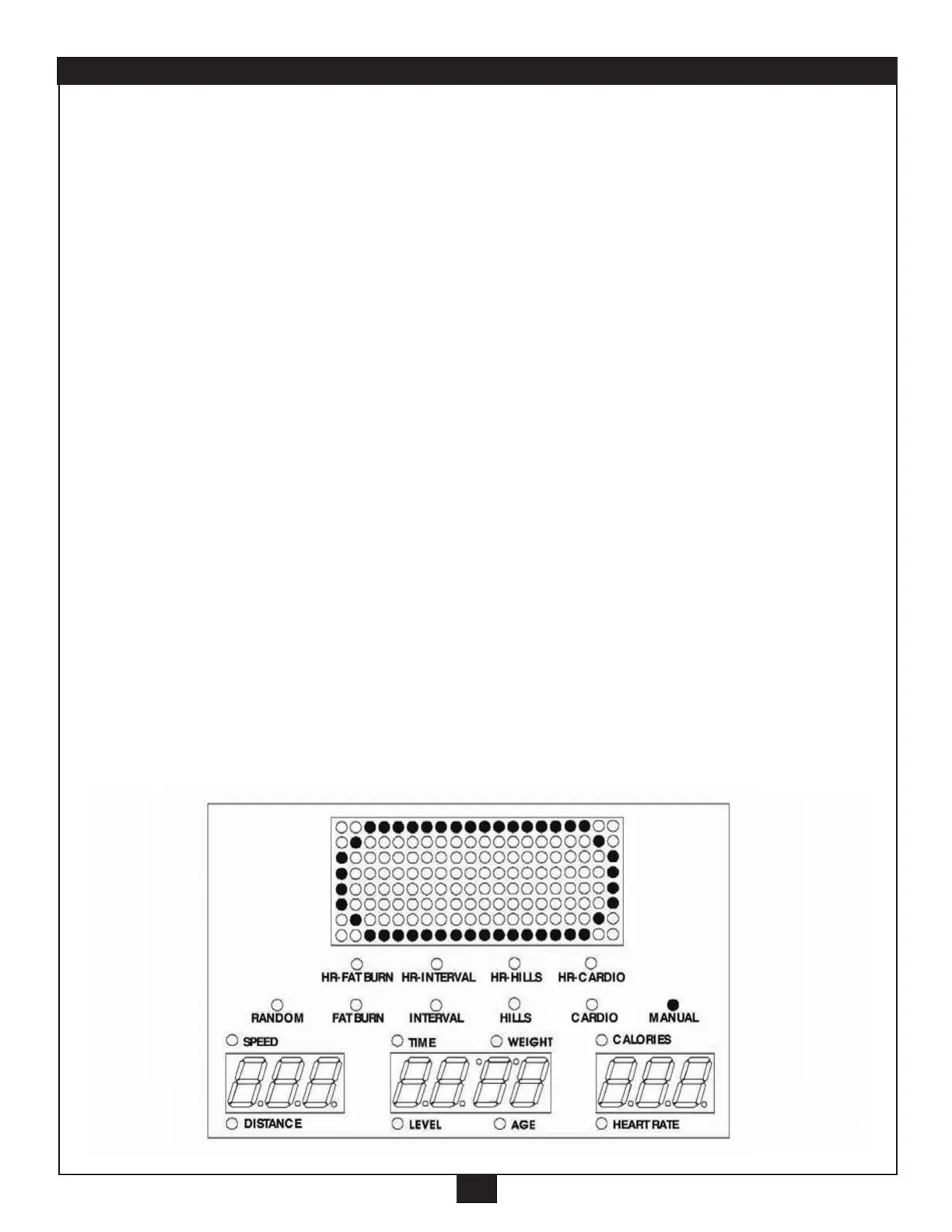 display the programs sequence: “Manual, Cardio, Hills, Interval, Fat Burn,