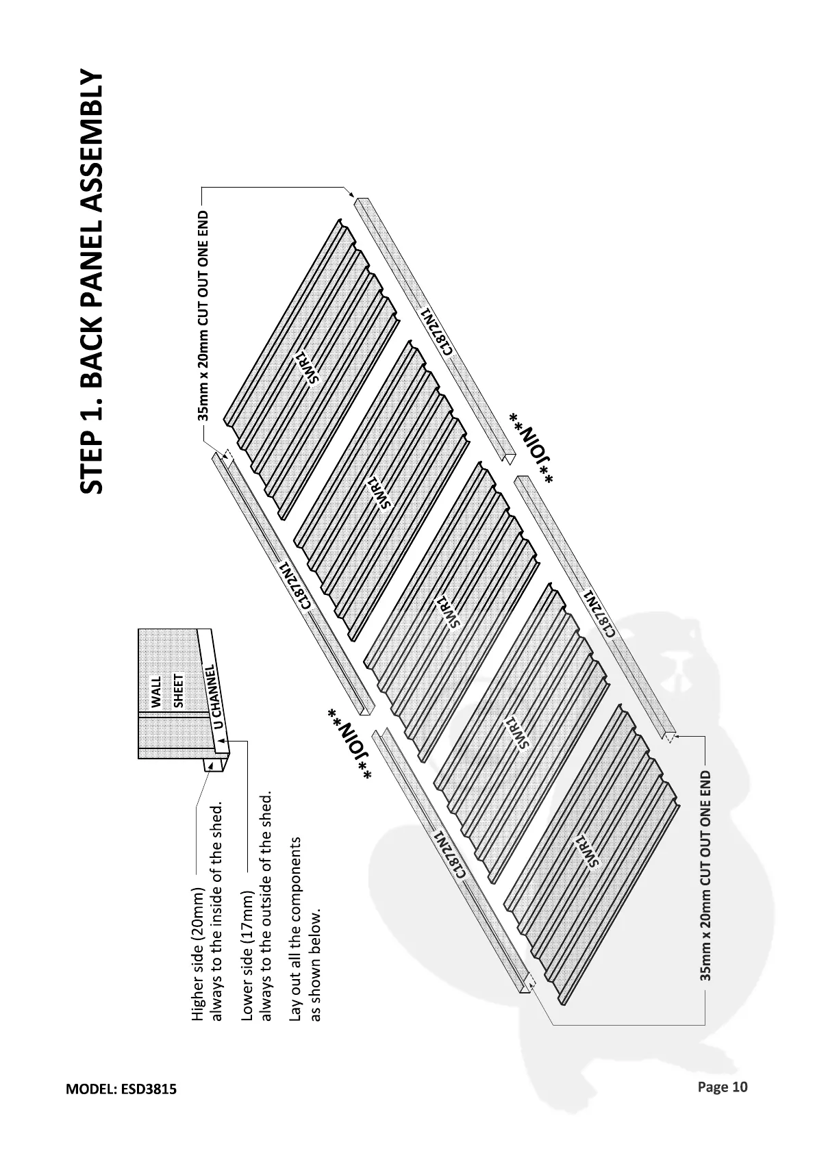 EnduraShed ESD3815 - Step 1: Back Panel Assembly; Panel Layout and Initial Fastening