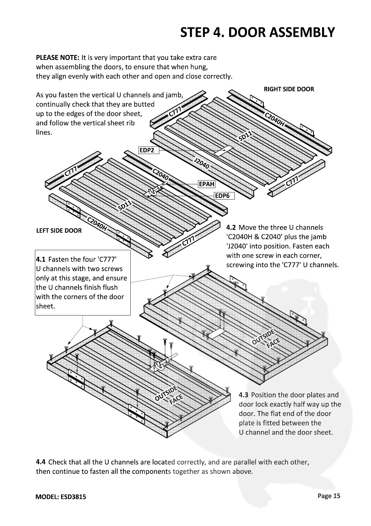EnduraShed ESD3815 - Step 4: Door Assembly; Assembling Door Frames; Fitting Door Plates and Lock
