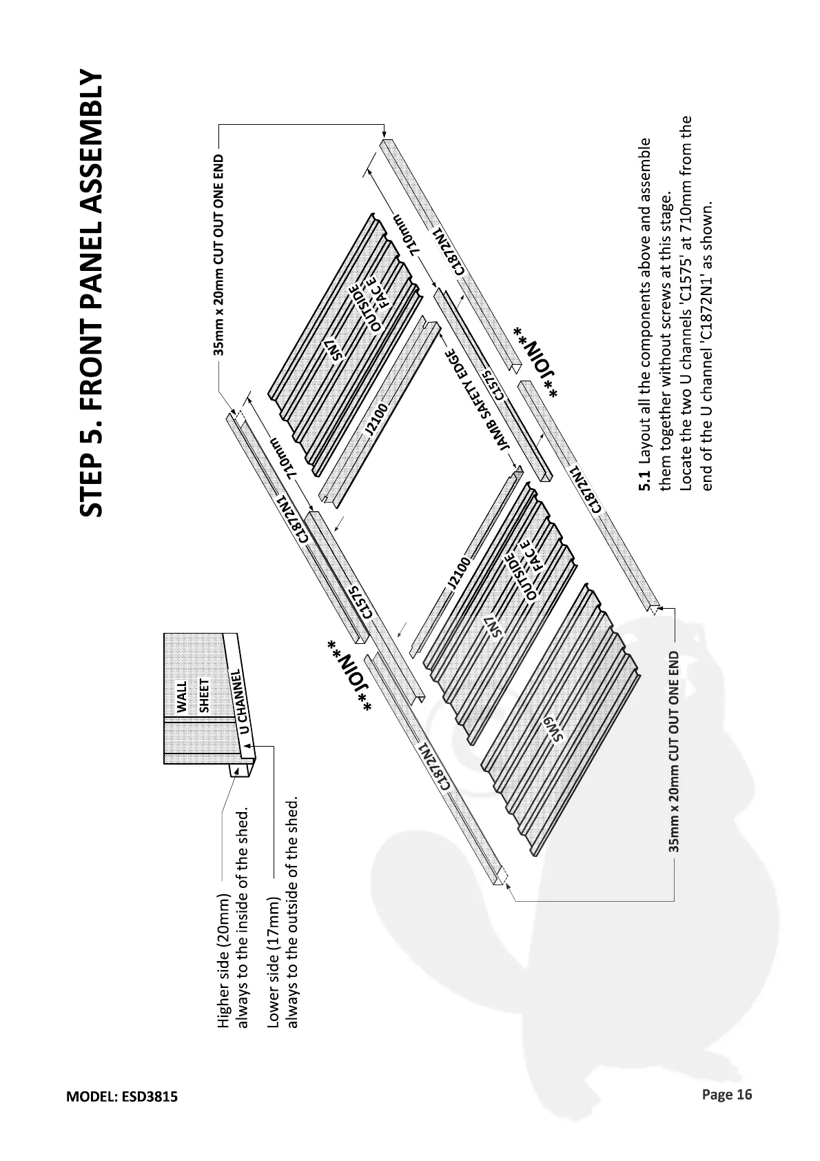 EnduraShed ESD3815 - Step 5: Front Panel Assembly; Front Panel Layout and U Channel Placement