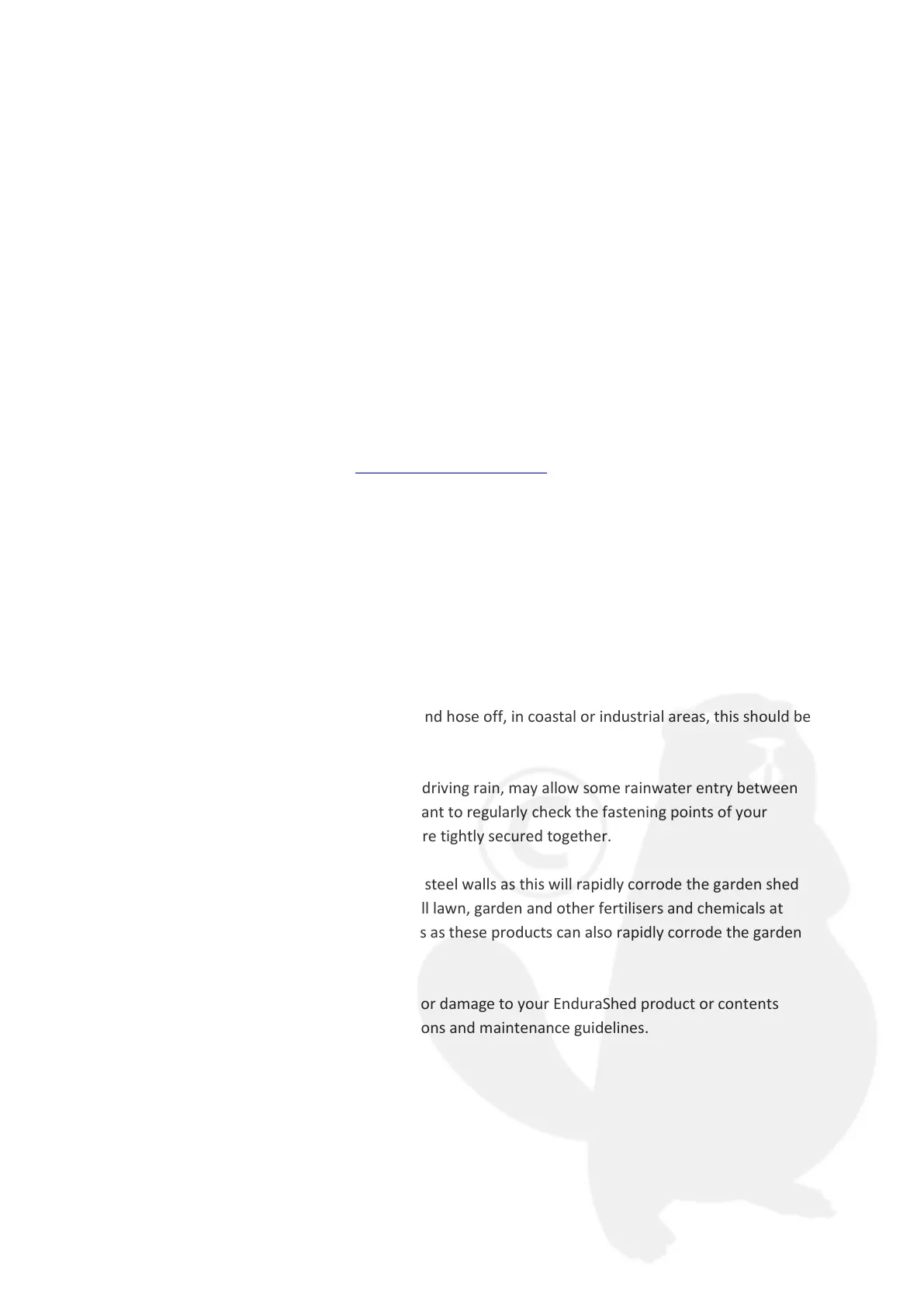 To maintain the protective steel coating and maximise the lifespan of your EnduraShed product,