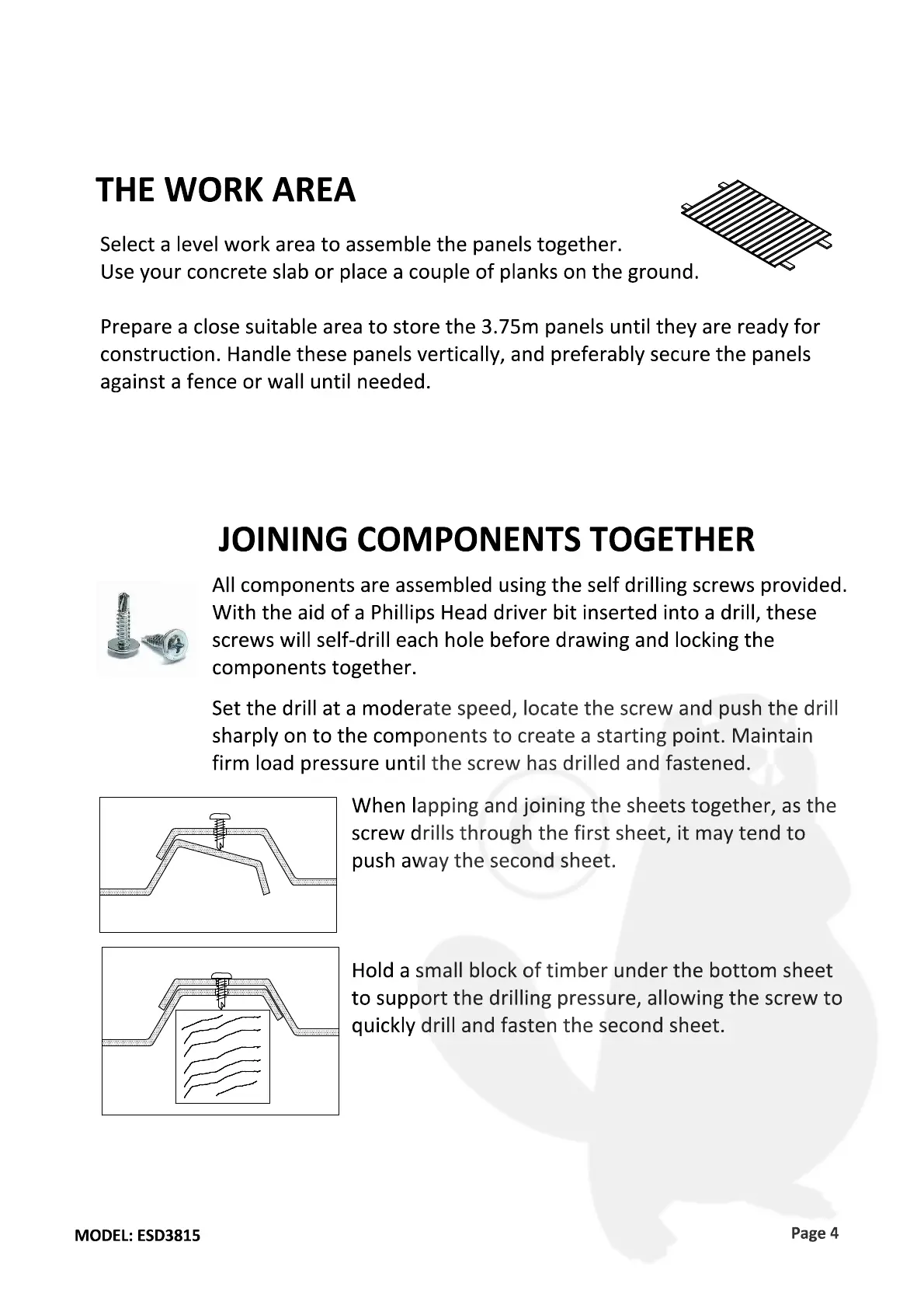 EnduraShed ESD3815 - Joining Components Together; Using Self-Drilling Screws; Sheet Joining Technique