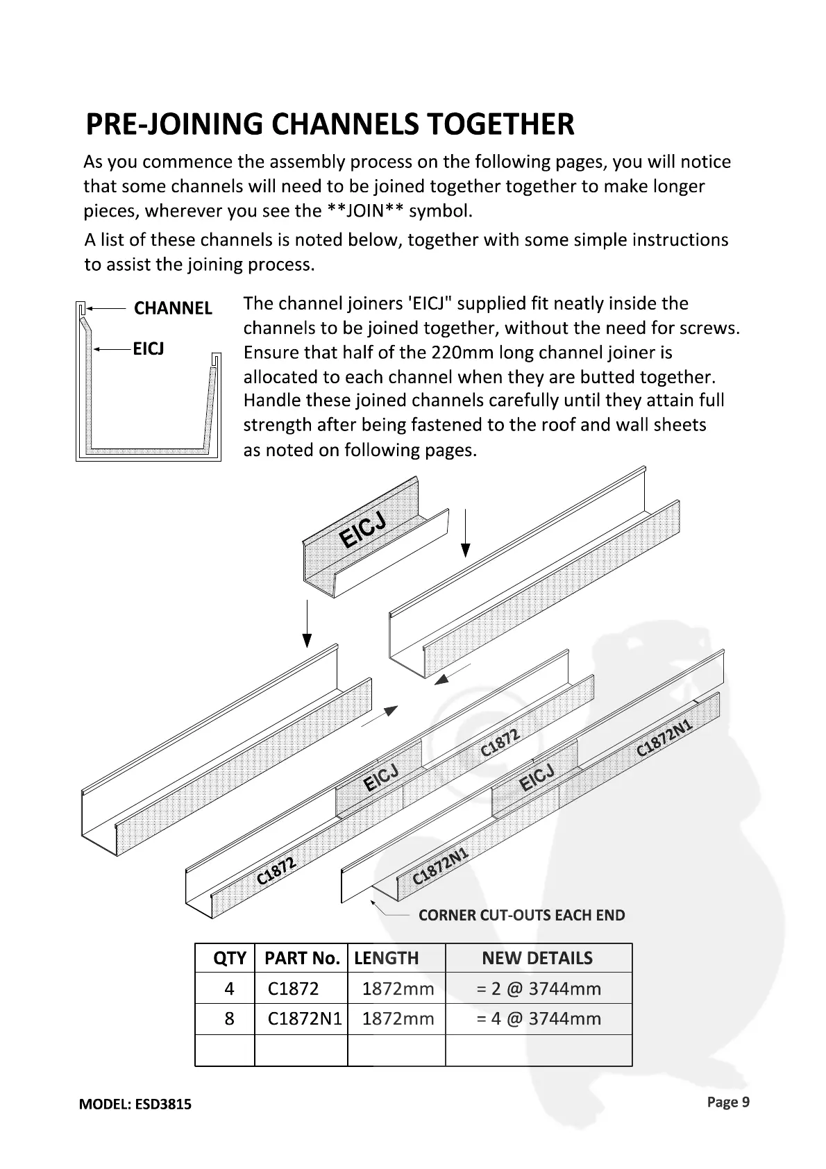 EnduraShed ESD3815 - Pre-Joining Channels Together