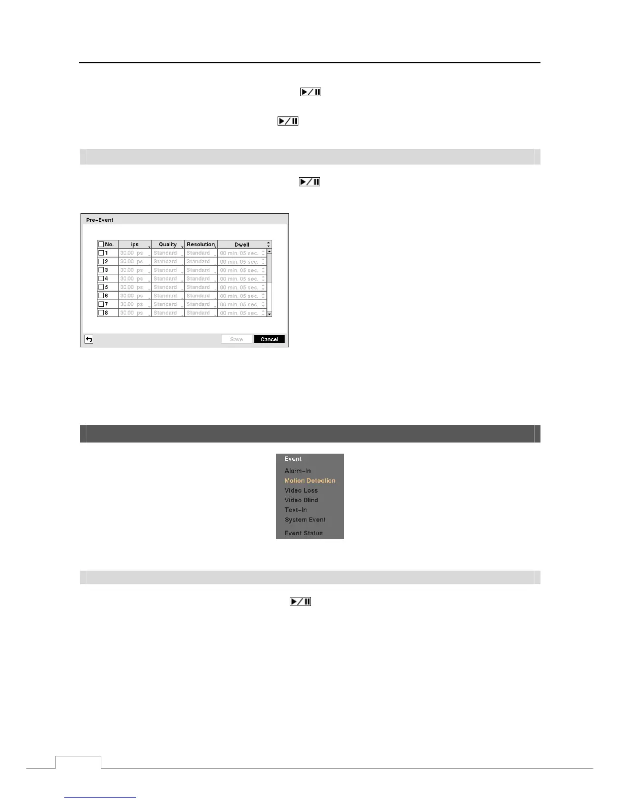 NOTE: When the DVR is in the Time or Time & Event mode, it ignores the pre-event settings and follows the