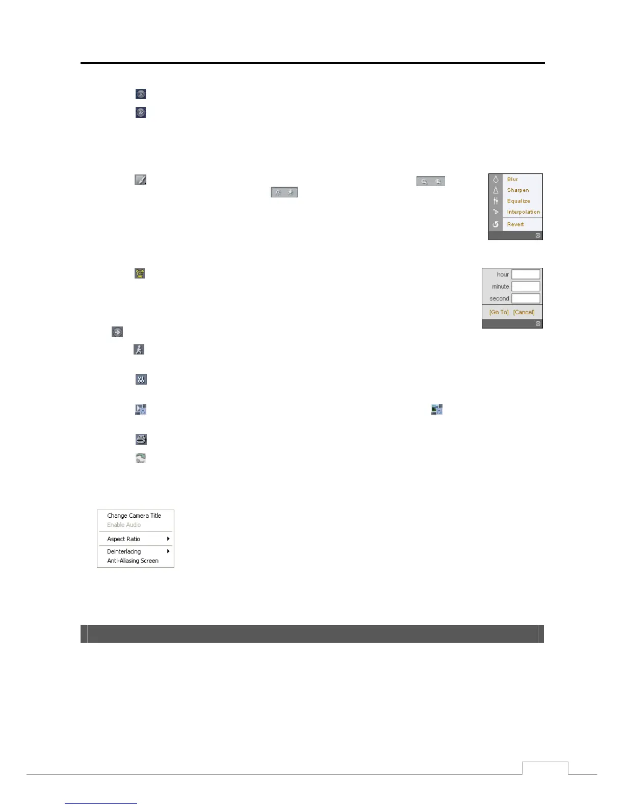 ⑤ Click the to blur, sharpen, equalize and interpolate playback images. Click the to zoom