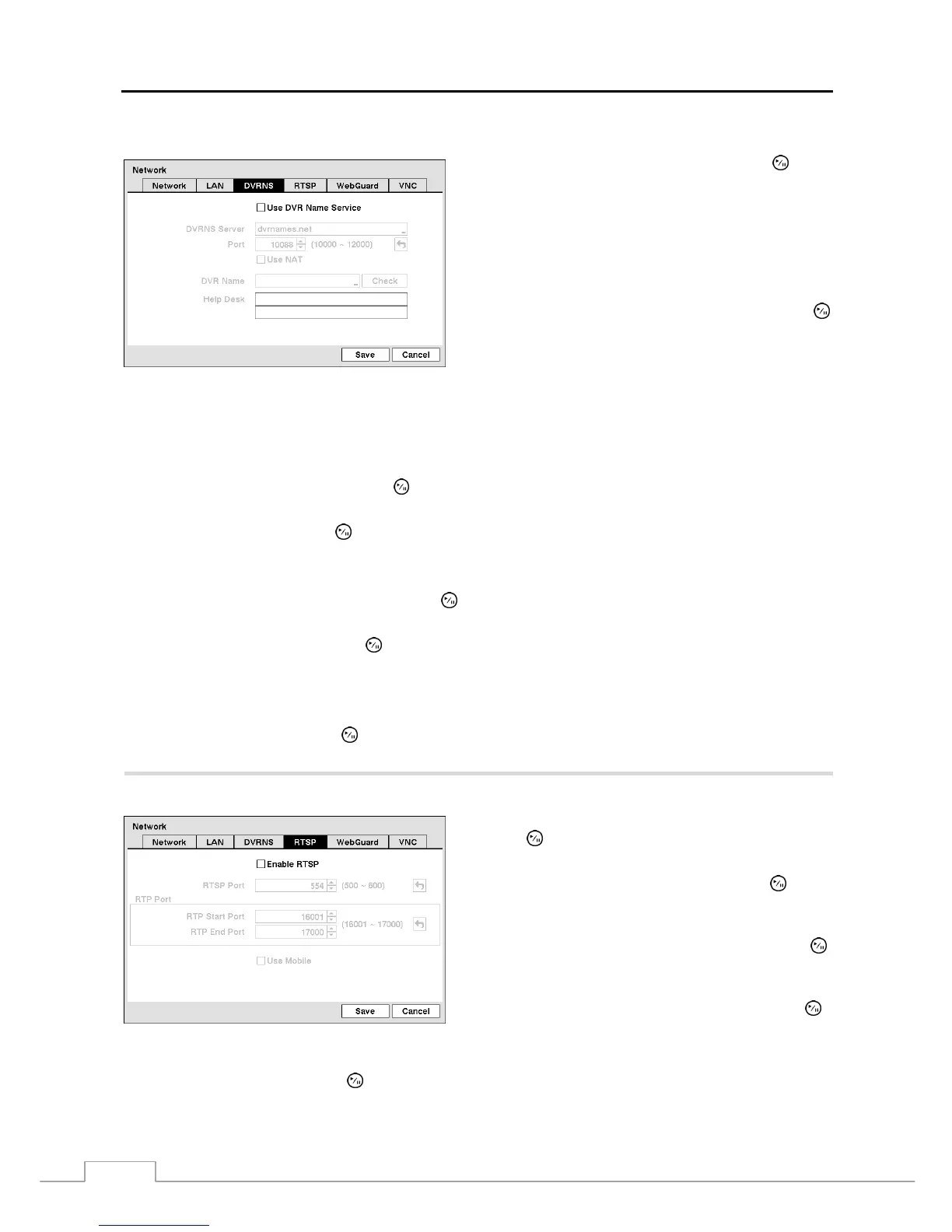 Highlight the box beside Port and press the button. Set the port number of the DVRNS server using the Up and