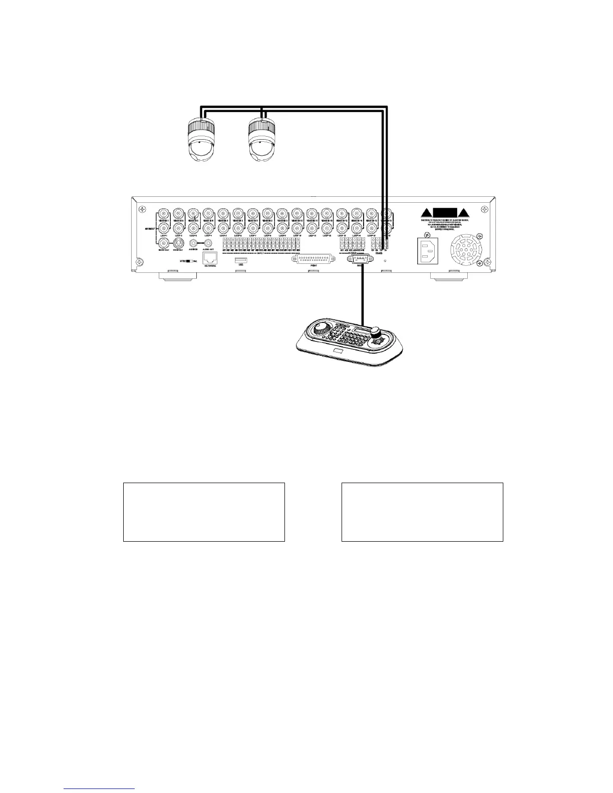 2. Connect RS-485 cables between the DVR and PTZ cameras.
