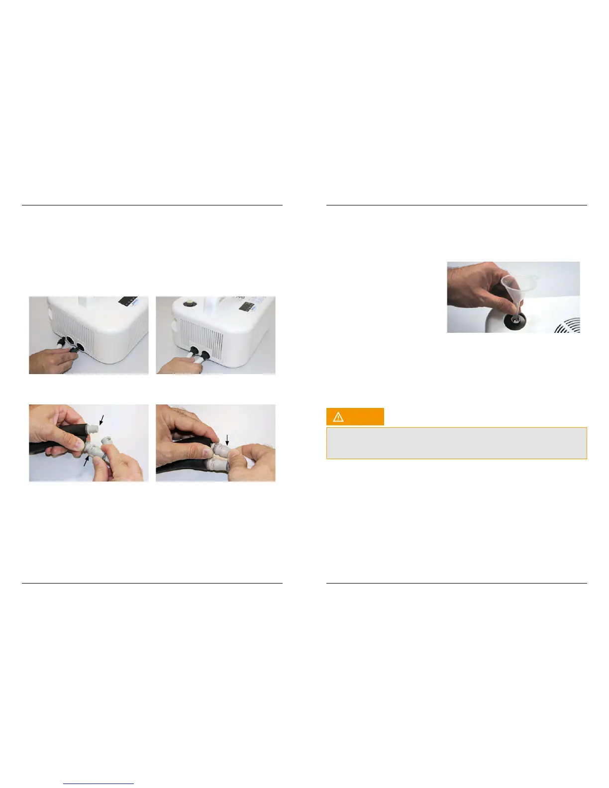 Connect the two black plastic plugs of the tube set to the control unit, as shown below. You hear a