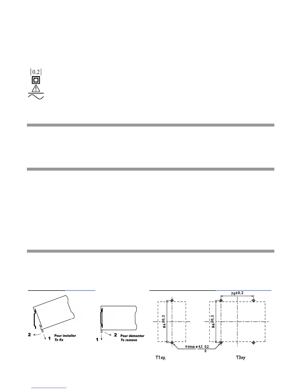 La fixation s’effectue sur rail DIN 35 mm en standard ou par vis grâce à l’ensemble optionnel de fixation de tableau (ACCT1007 ou
