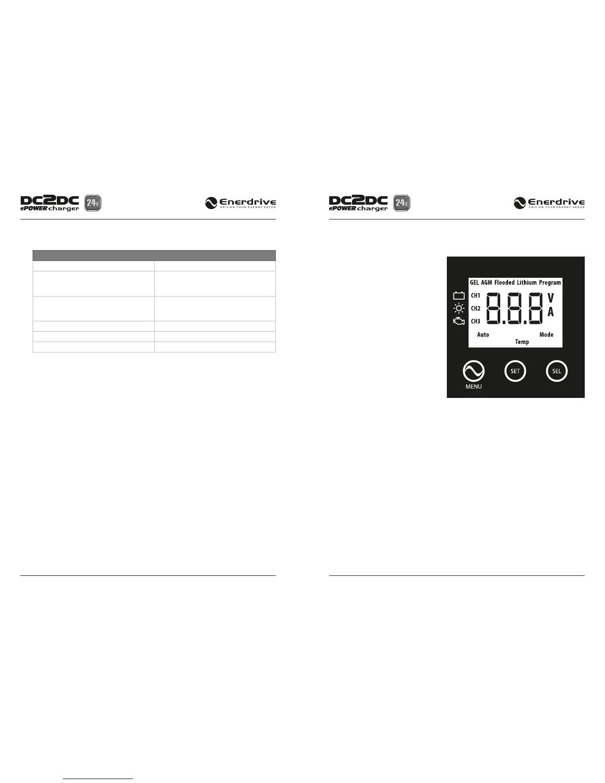 • CH2 icon will ash when the input voltage is above the Flashing Voltage (> 14.5V) and is