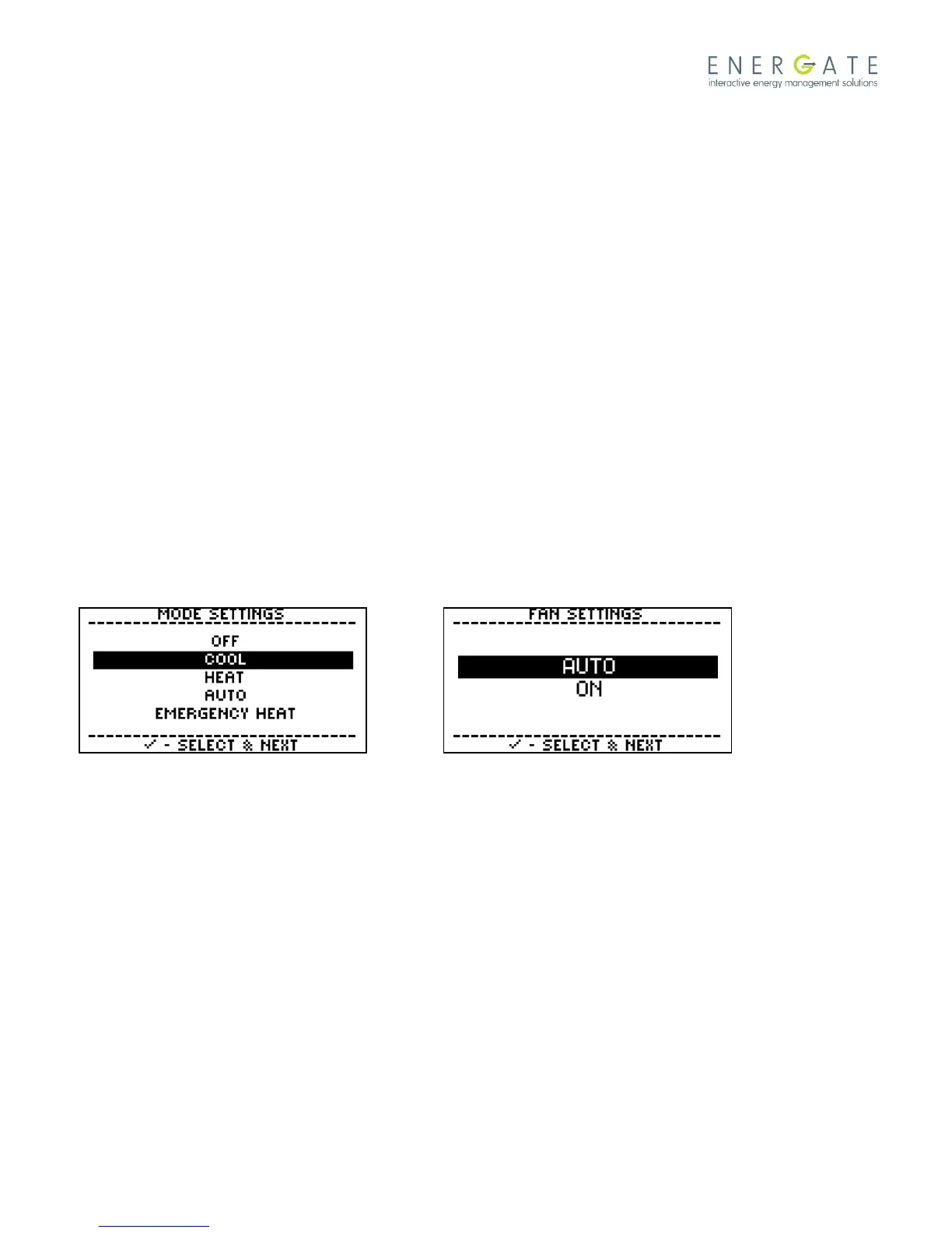 3. Use the Up or Down buttons to select the thermostat mode, and then press the Menu/Select button.