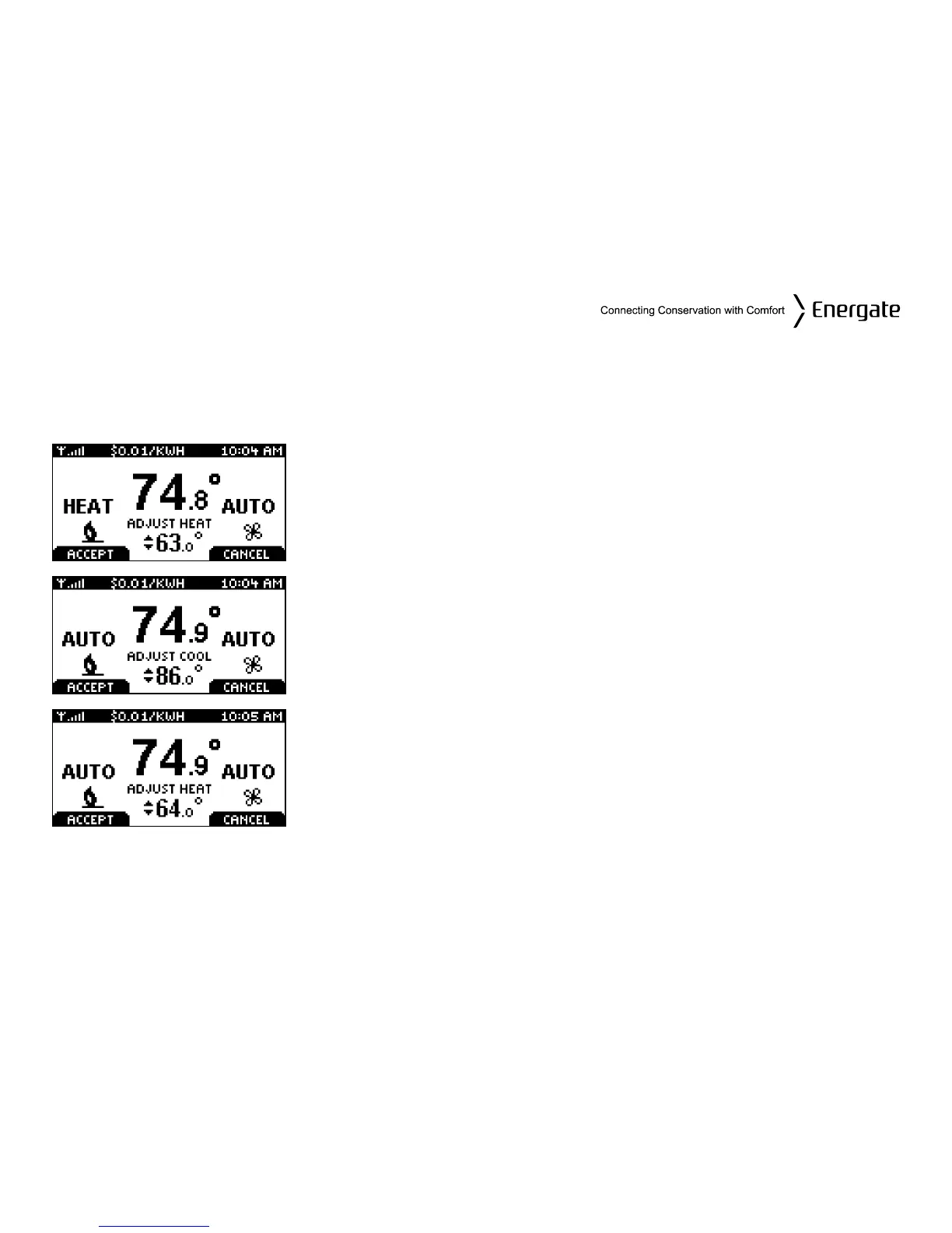 SETPOINTS (i.e. the screen will show “ADJUST HEAT” or “ADJUST