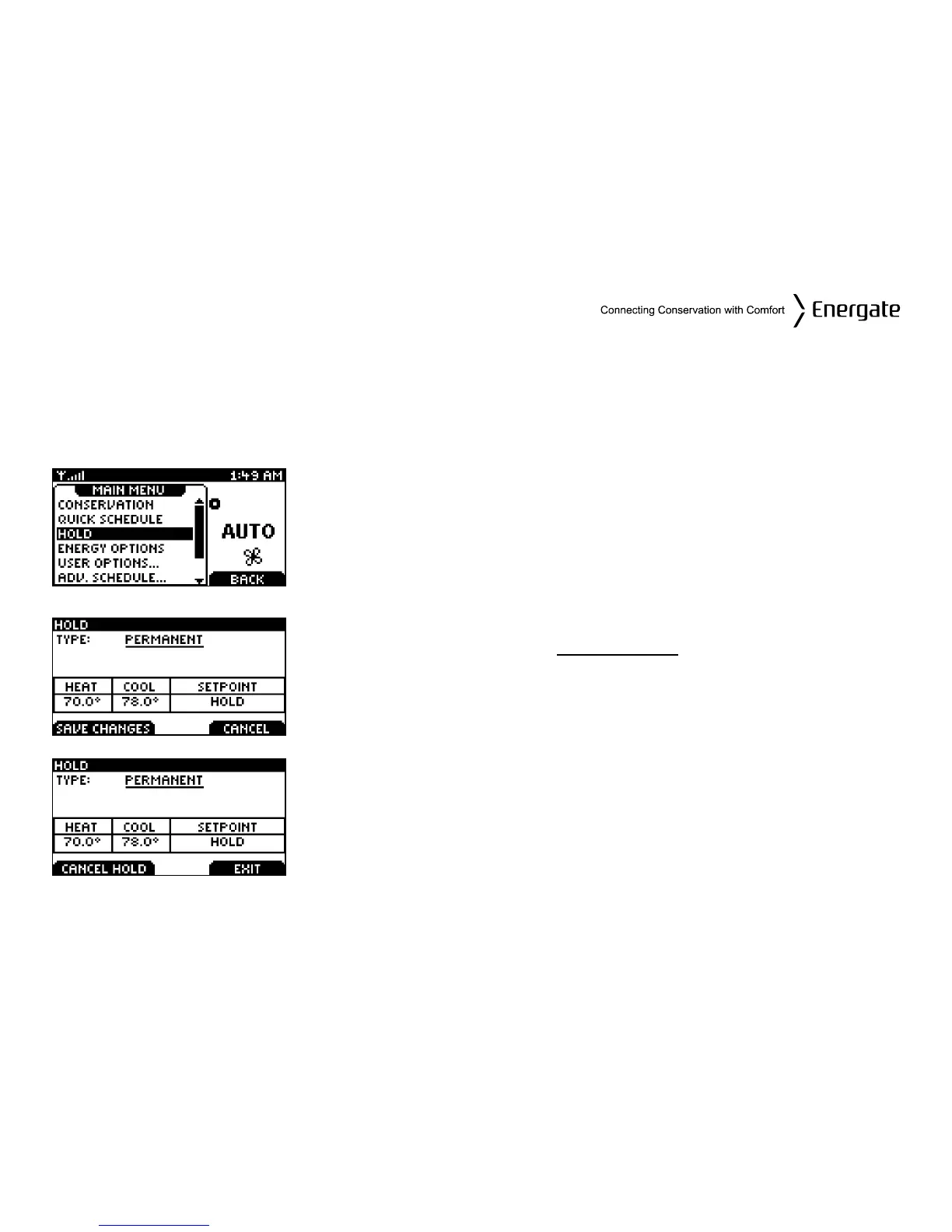 • Temporary Hold (hold until the next scheduled SETPOINT)
