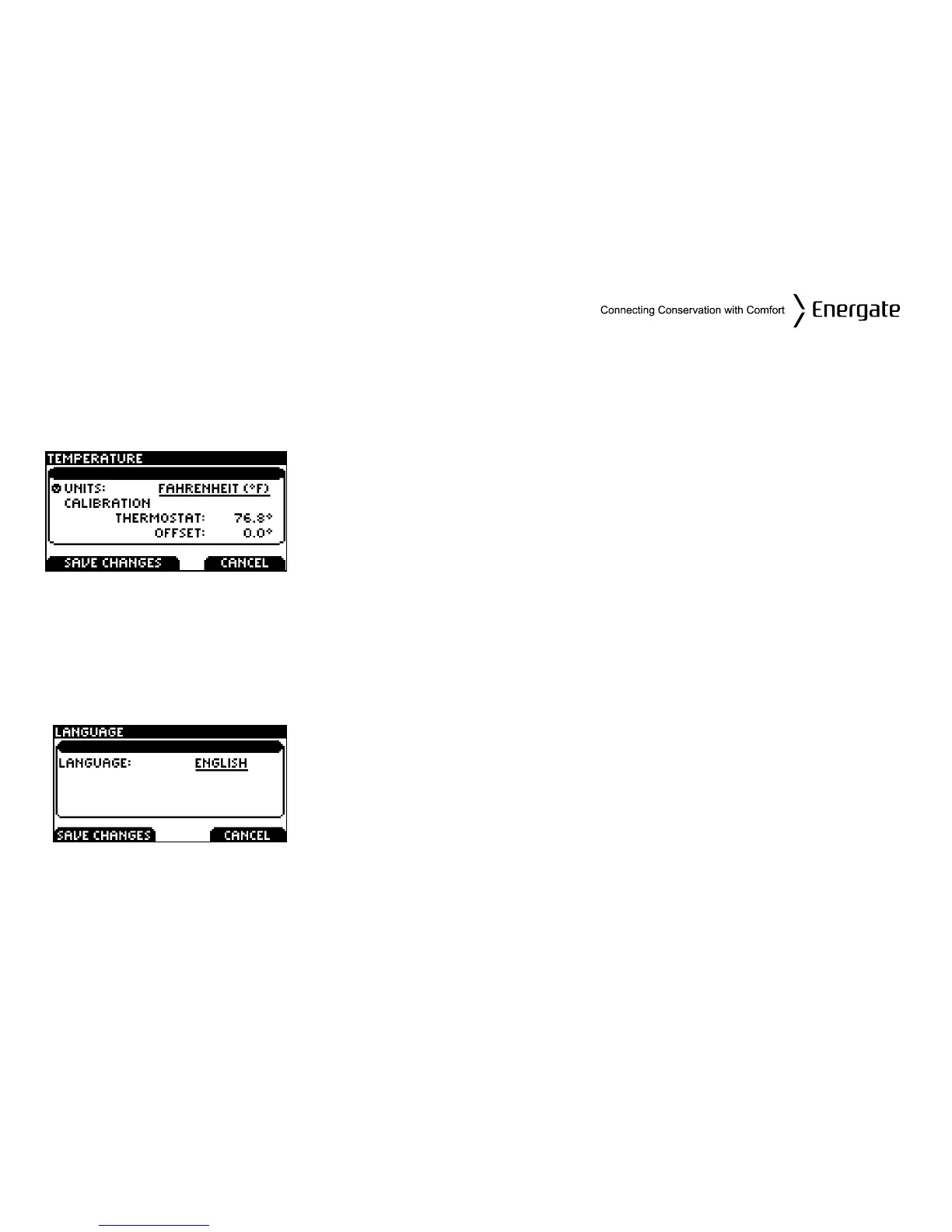 The thermostat can be set to English or Spanish through the LANGUAGE screen.
