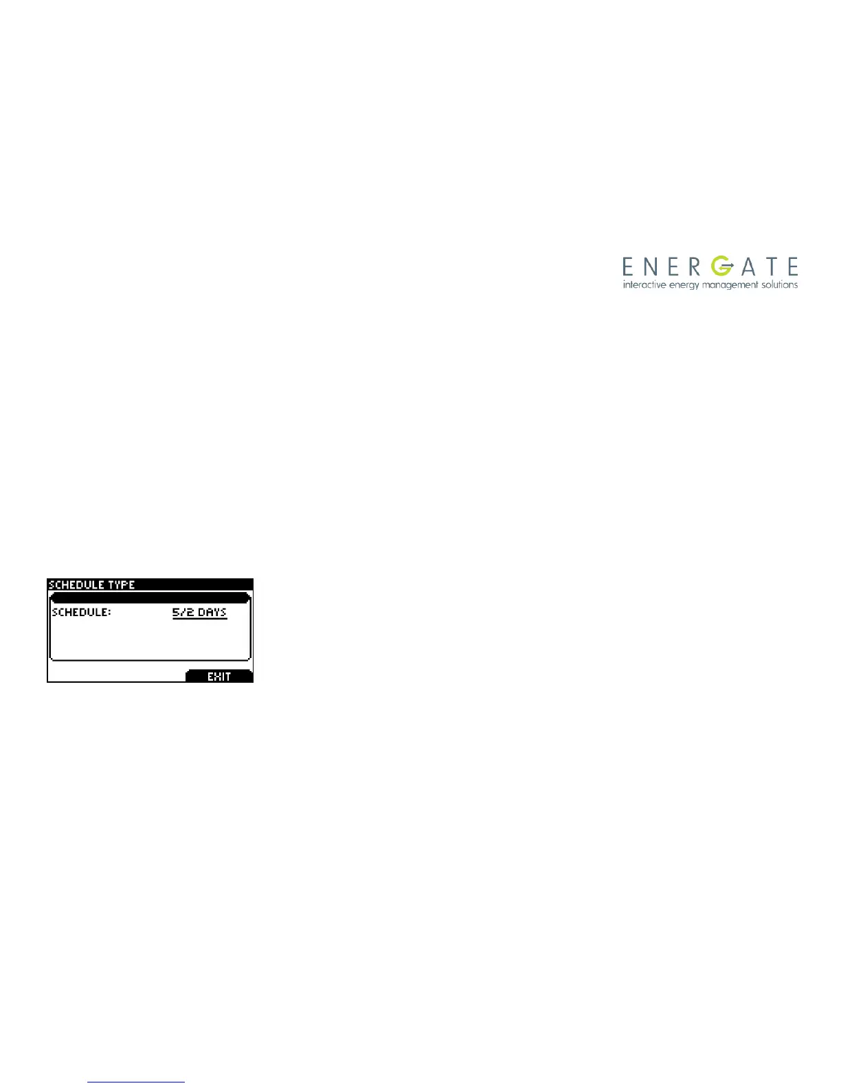 The SCHEDULE TYPE screen allows you to choose among three different weekly schedule types.