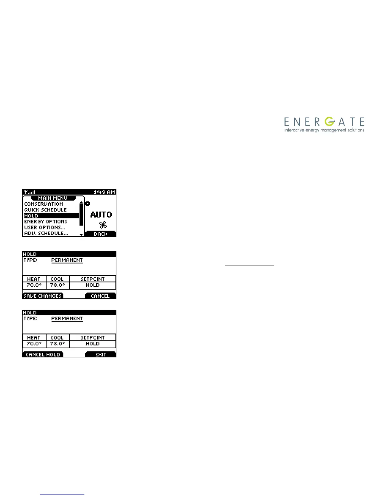 Hold Screen - Permanent, Timed, and Temporary Temperature Holds
