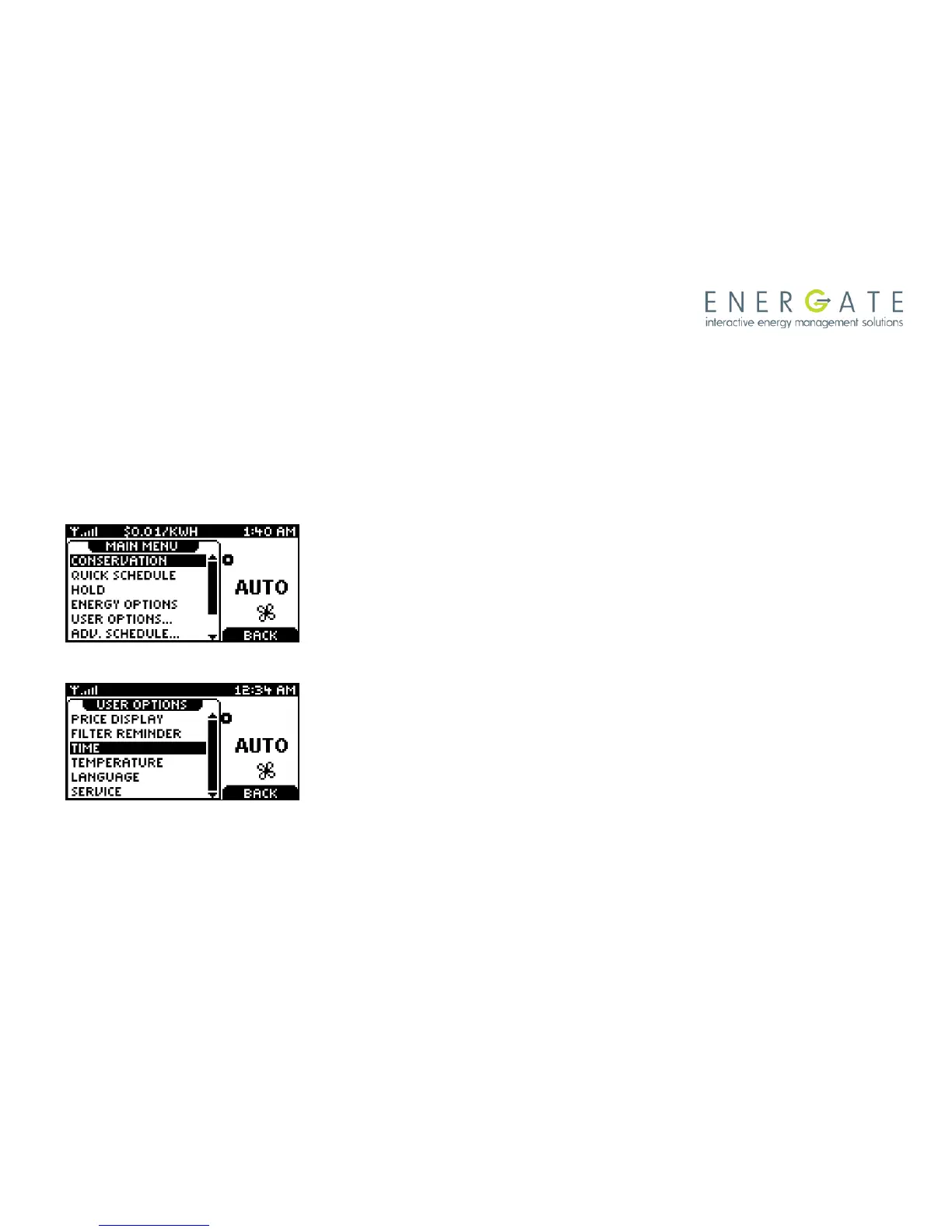 and time by selecting the TIME menu item from the USER OPTIONS menu.